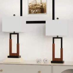 HomeRoots 30 In. Brown Coastal Table Piper Duo Lamps With Brown Shade (Set Of 2)