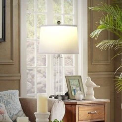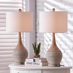 24.8 In. White Modern Ceramic Bedside Table Lamp, 3 Color Temperature Lamps For Living Room Bedroom
