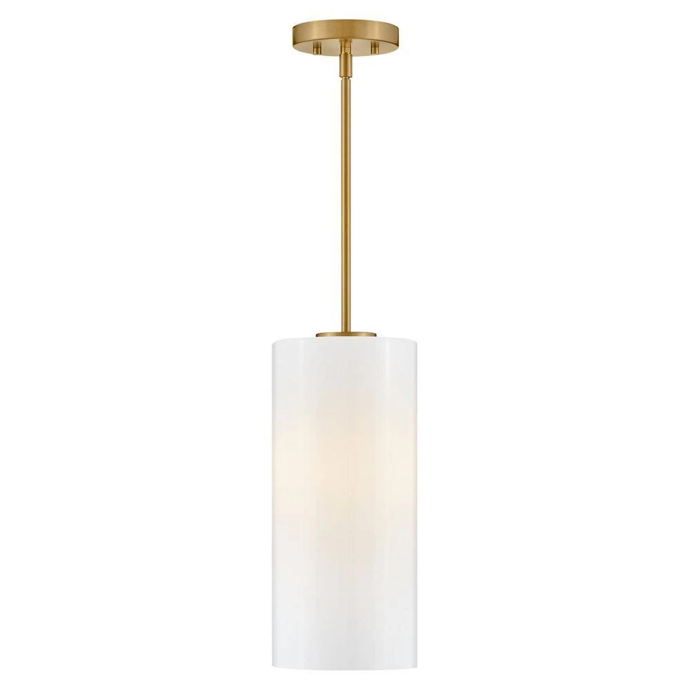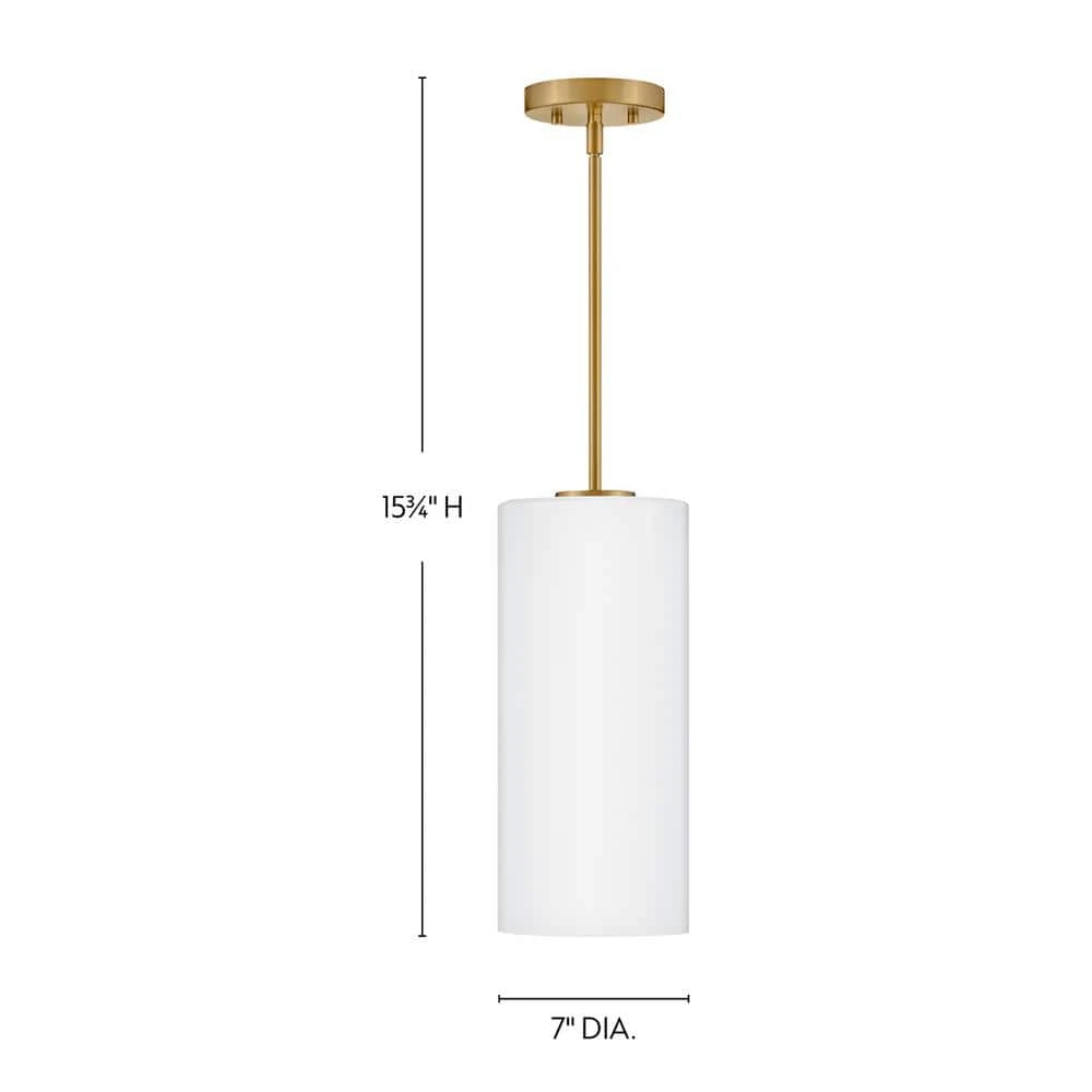Sleek, streamlined profile with an oversized cylindrical clear glass shade, the Lane Single Pendant Light adds versatility to your home. Contemporary style for a small foyer, a kitchen or dining room, or from a high ceiling in a closet. Includes 6 in. and two 12 in. stem extensions, this light can be hung on even or sloped ceilings (up to 90°). Cased Opal Glass cylindrical shade softens the glow from the 12w medium LED bulb (not included) of your choice.
