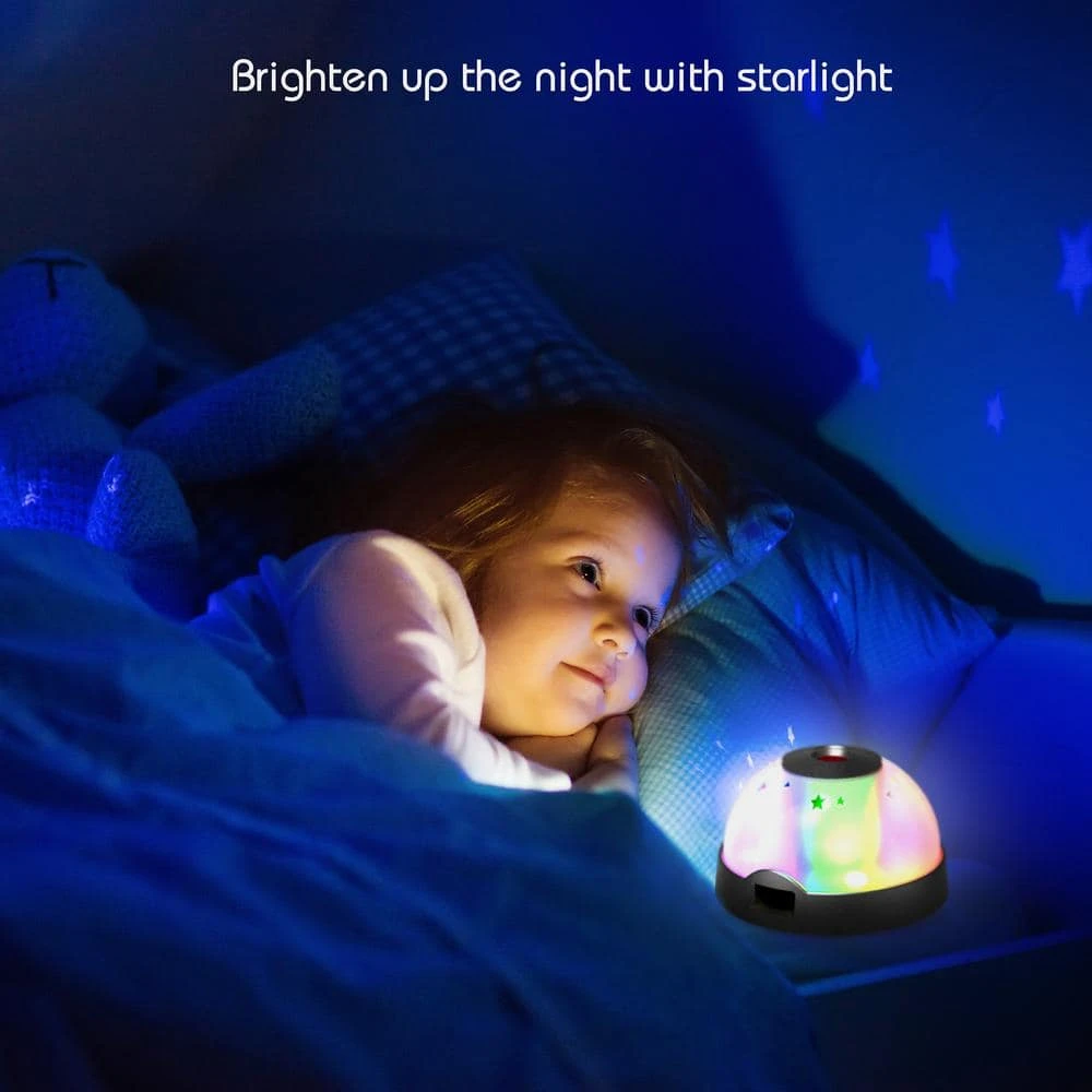 - 2-modes: simply projects the current time on ceiling or a delightful, multi-color moon and stars display