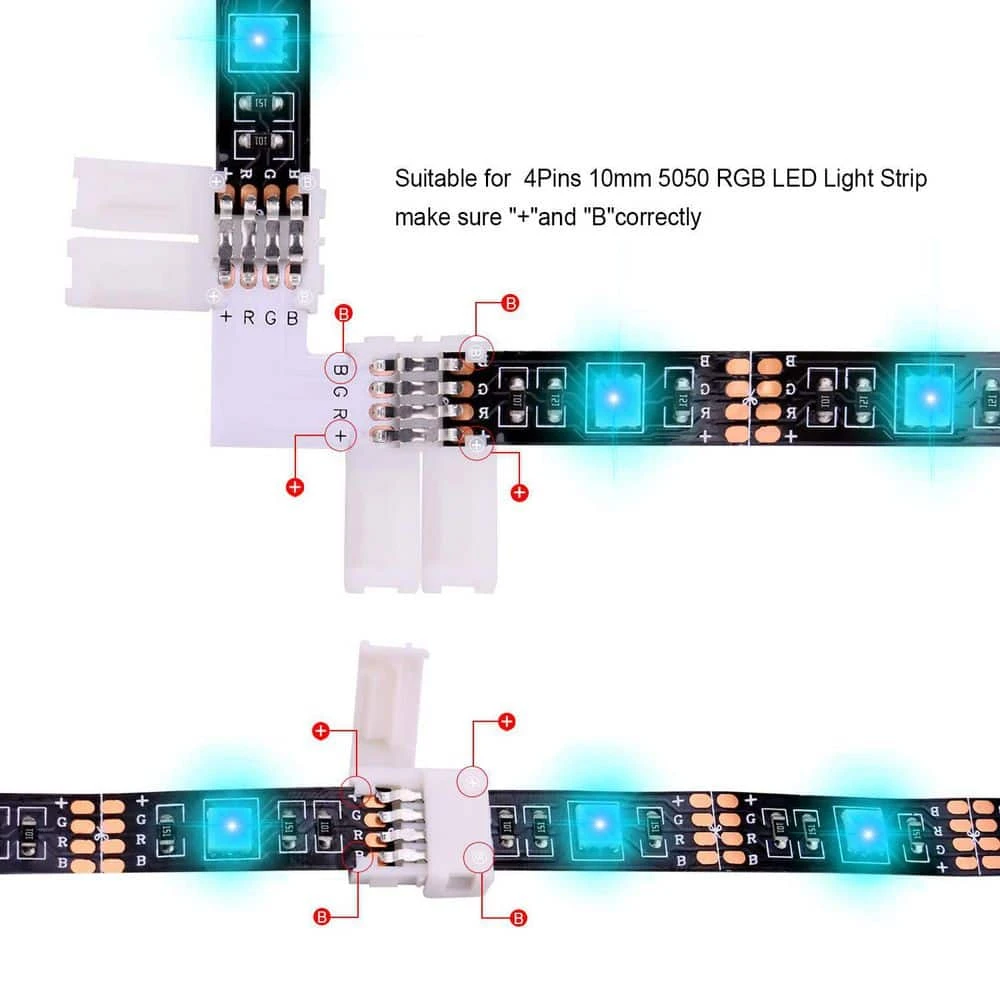 - Wide application: These 4 – pin LED light connectors fit all 10mm 4 – pin 5050 3528 RGB strips. They can connect non – waterproof and waterproof IP65 strips (peel silicone coating for waterproof ones).