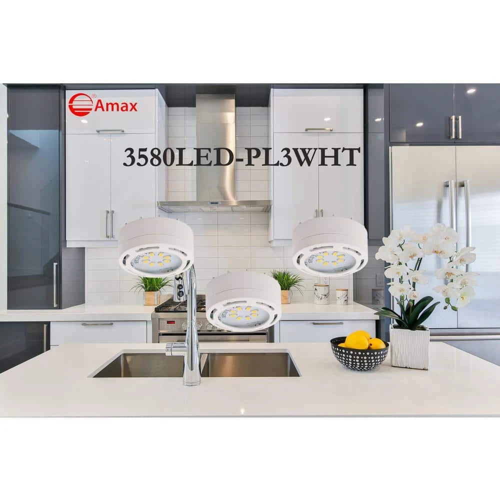 The Amax LED puck light fixture 3580LED-PL3WHT is an elegant addition to your work space, cabinets and closet. A true touch of luxury and solid sumptuousness that can be seen from afar with little effort. The 3580LED-PL3WHT puck light fixture has been designed with a solid black frame that displays quality craftsmanship. LED pucks can be recessed or surface mounted with lights shining downward, they are dimmable and linkable up to 6 units. It uses less energy than fluorescent lights, lasts longer and is maintenance free. This includes a heavy gauge and low profile steel housing. The 3580LED-PL3WHT is available in warm White (3000K). The LED driver is built-in-to the LED puck light housing. Color range gives off a comfortable warm white color equivalent to a halogen bulb. Works well with most dimmer switches. This includes mounting hardware and an installation guide. Note: This elegant and energy-efficient ceiling fixture is dimmable when used with a compatible LED rated dimmer.