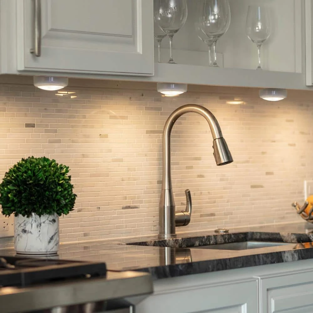 Easily transform your home by adding this LED White Puck Light With Remote (2-Pack). The remote control allows you to control up to 12 lights. Each light can produce a warm glow at 3000K. You can also dim the lights to your preferred level of brightness. This light is designed to last for over 100 hours of use.