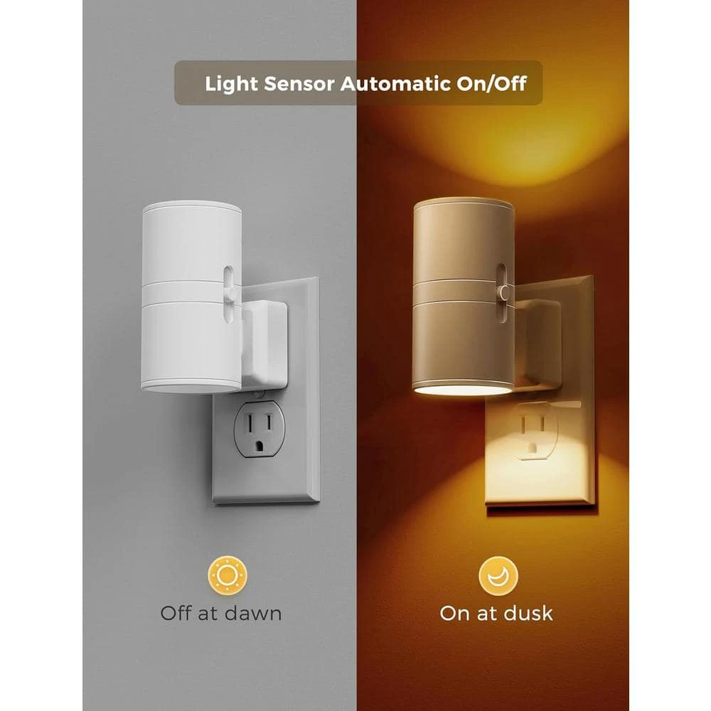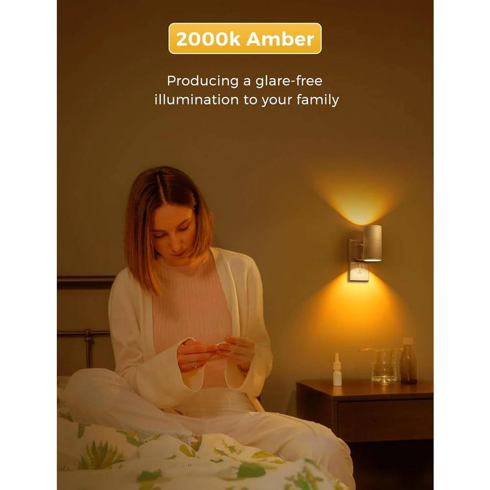 Enhance your home’s ambiance with the sleek and functional Amber Night Light. Its minimalist white shade seamlessly integrates with any decor, making it a stylish addition to any room, from bedrooms to bathrooms, hallways, nurseries, and more.Equipped with a dusk-to-dawn sensor, this night light automatically turns on at dusk and off at dawn, offering convenience and energy savings. This smart feature ensures the light is on only when needed, eliminating the need for manual operation.Designed with a warm 2000K amber yellow glow, this night light emits no blue light, promoting better sleep quality and helping to keep bugs at bay. The special spectrum creates a healthier environment by reducing light pollution and enhancing nighttime comfort.Customize the illumination with the dimmer adjustment, which allows you to set brightness from 0 to 100 lumens. This flexibility ensures you can achieve the perfect level of light for various needs, whether it’s a gentle glow for a restful night or brighter light for safety in the dark.Ideal for a wide range of applications, this versatile night light is perfect for use in bedrooms, bathrooms, hallways, nurseries, stairways, and more. Enjoy a peaceful, bug-free, and stylish lighting solution with this modern night light, designed to improve your nighttime environment.