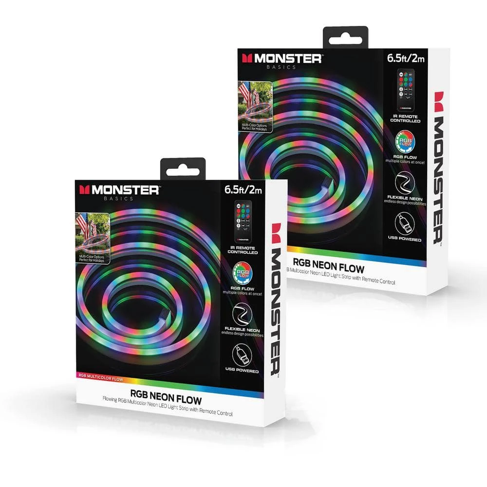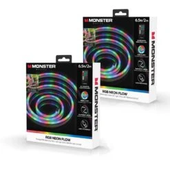 Transform any given space with the Monster RGB Color-Flow Neon-LED Strip into a brilliant display of colors. Built with stronger materials than most LED strips, you’ll be able to bend and shape it into more unique and favorable shapes that conform to your exact needs. This also prevents them from being easily cracked or broken from frequent overuse. You’ll have fully customizable color, lighting and brightness settings that allow you to create the most unique and striking visual displays possible. The remote control offers more customizable settings, while also working best in large spaces, with a signal that reaches up to 26 ft. away. With its Easy setup and multiple options, the Neon-LED Strip can transform your space into something truly beautiful.