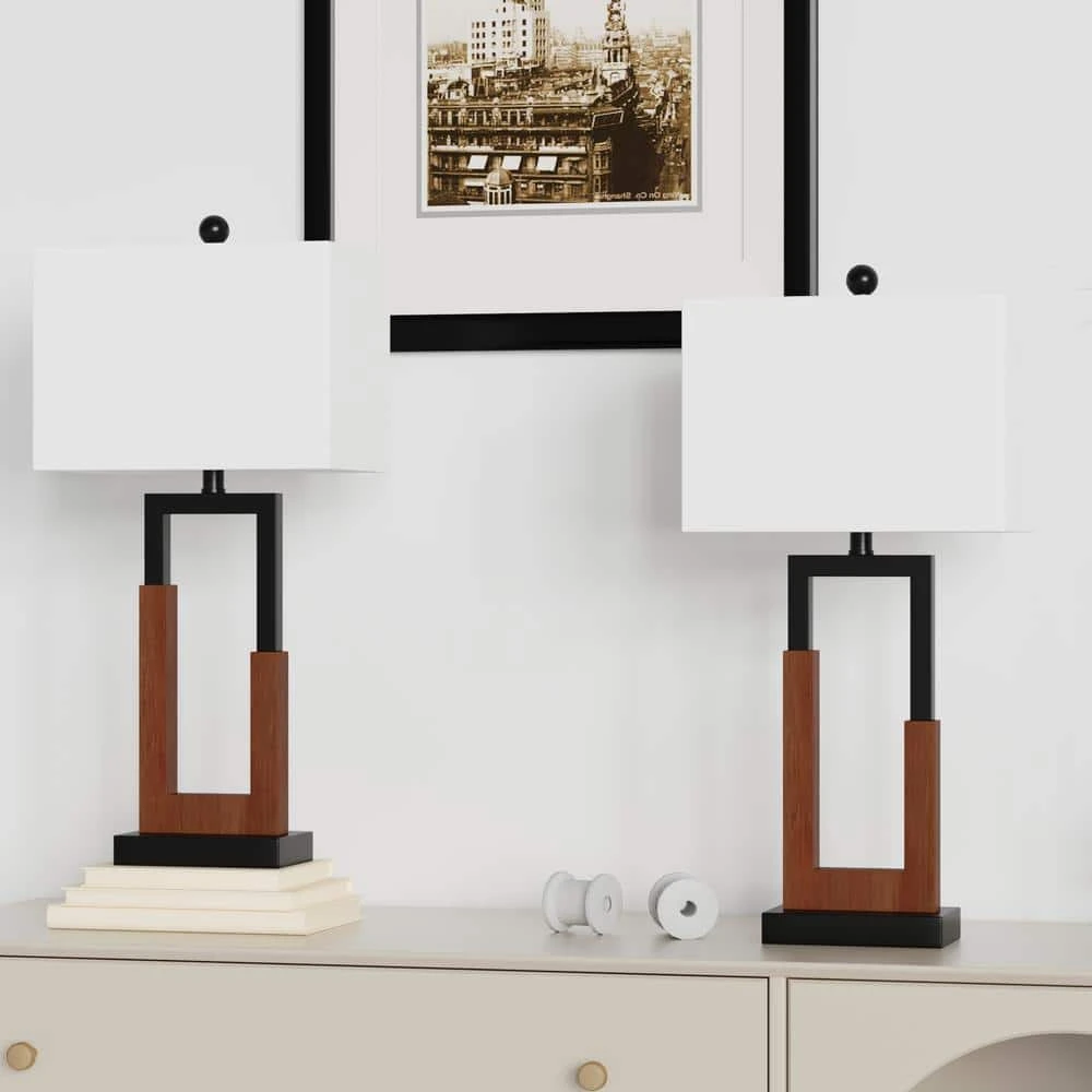 This statement piece features a simple geometric base with a hollowed out characteristic design of the lamp base combined with a wood grain colored finish and a modern look in solid wood and hardware. With both a built-in USB port and the latest built-in Type-C port that keeps up with the times, as well as a 3-way switch, the overall convenience is quick and can be precisely dimmed. With white drum linen lampshade, strong light transmission and soft light does not stimulate, is the best choice for modern home lighting. This modern table lamp is certified by the U.S. ETL, product quality is safe and stable, you can buy with confidence.