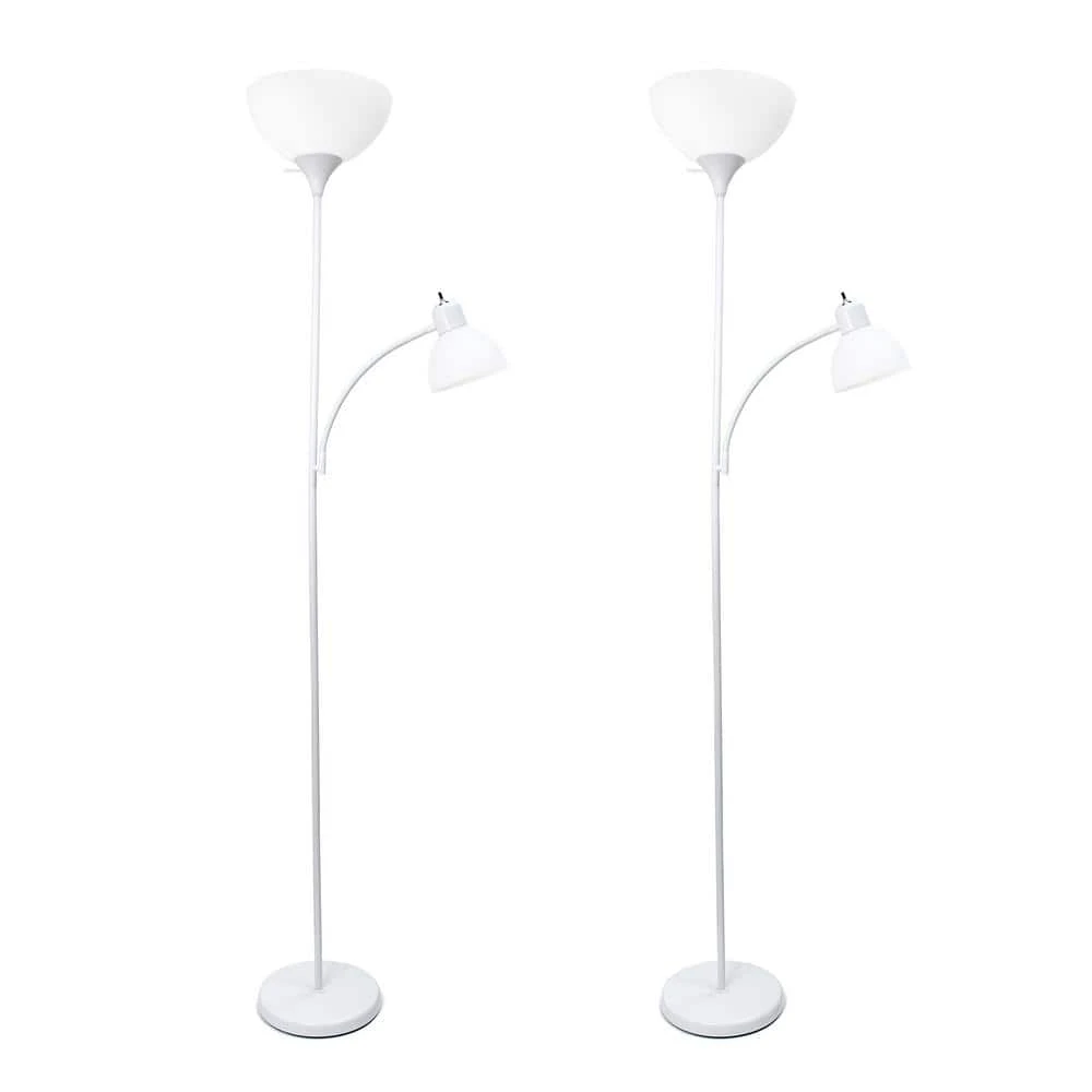 A charming, inexpensive and practical floor lamp to meet your basic lighting needs. This simple mother/daughter floor lamp with reading light features a painted finish and plastic white shades. Perfect for living room, bedroom, office, kids room or college dorm.