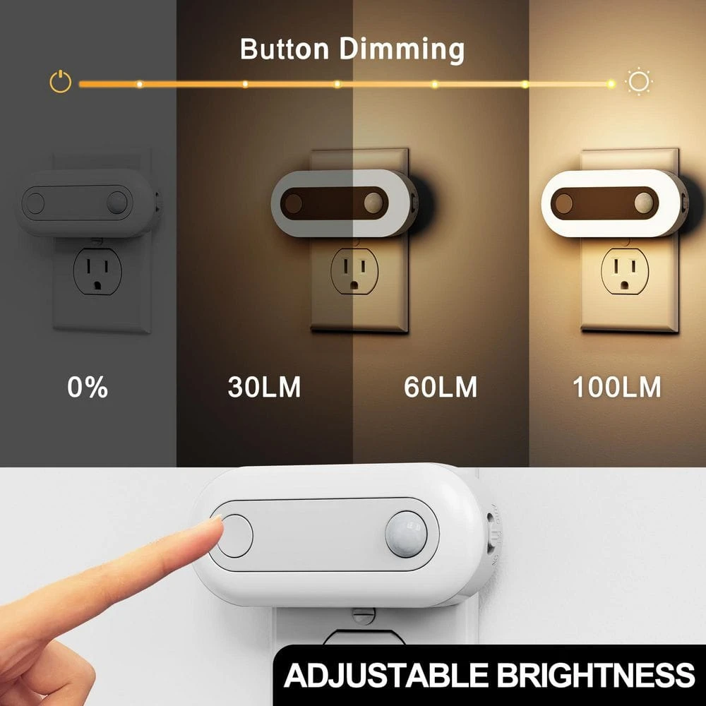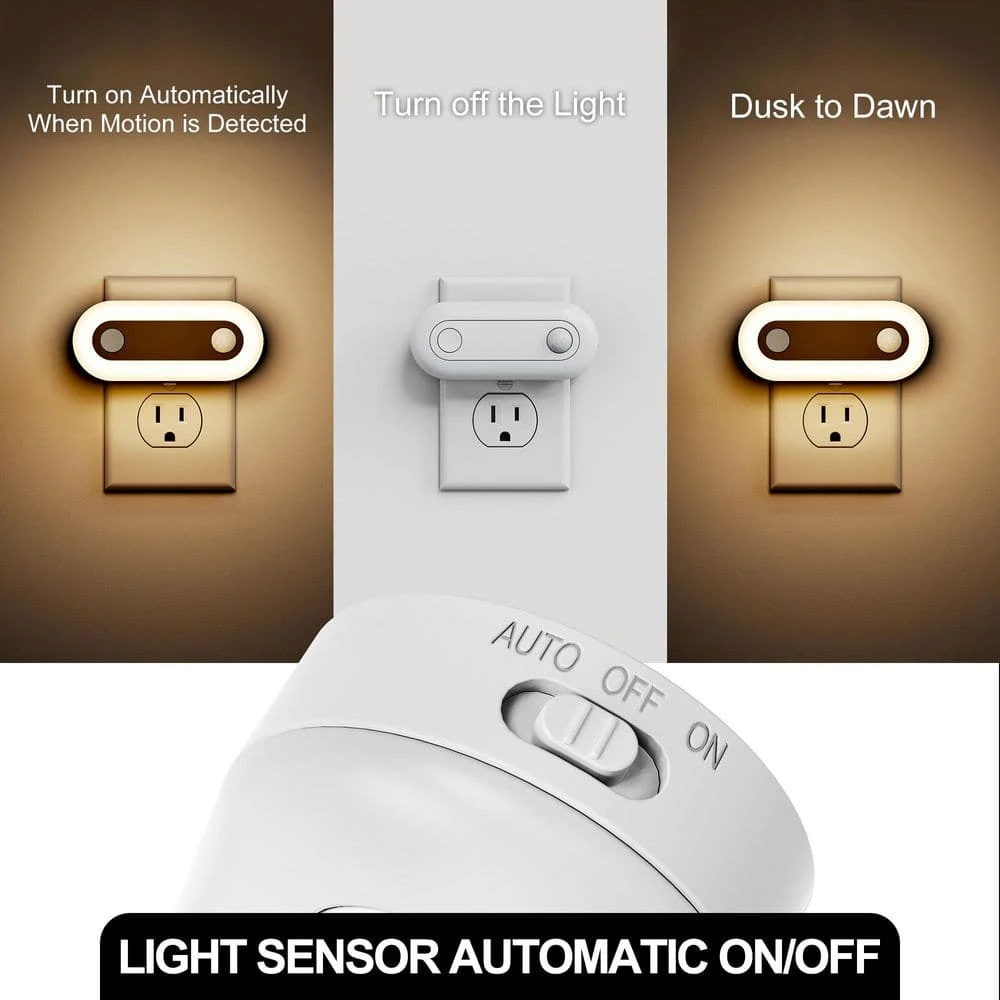 - 2-in-1 sensor technology: this night light combines a motion sensor and a dusk-to-dawn sensor, offering 3-modes: auto (motion-activated in the dark), on (constant illumination based on ambient light), and off (turns off the light)