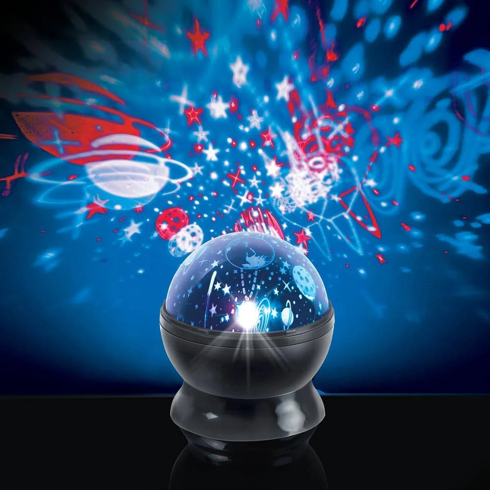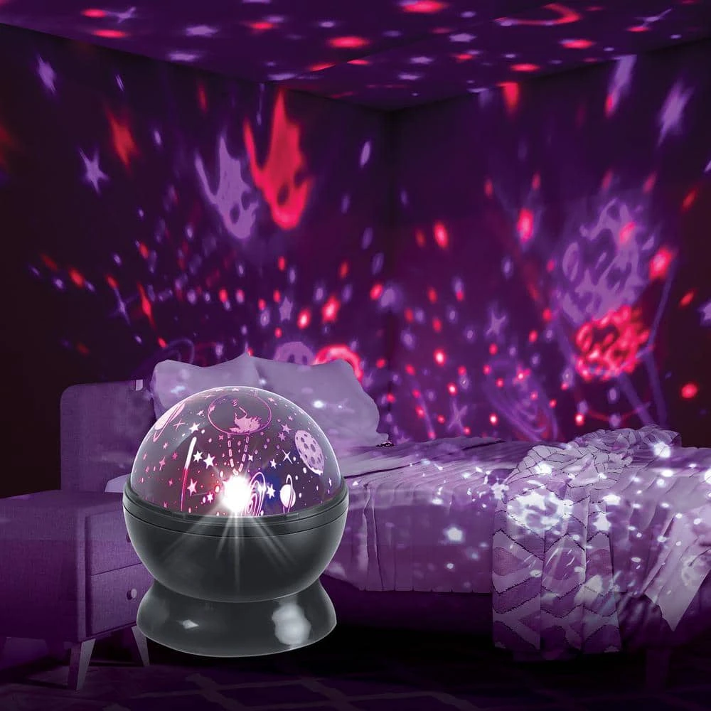 Drift off under the stars with the Litehaus 5 in. Dia Outer Space LED Room Projector – the perfect night light for creating a peaceful, dreamy atmosphere. Its soft white, blue, red, and orange LED lights project steady or slowly rotating cosmic patterns onto your ceiling or walls, ideal for bedtime routines or quiet moments. Compact and portable, you can bring this calming glow wherever you go. Whether powered by USB or batteries, it’s a soothing light source designed for bedrooms, nurseries, or any space where you want to unwind under the stars.