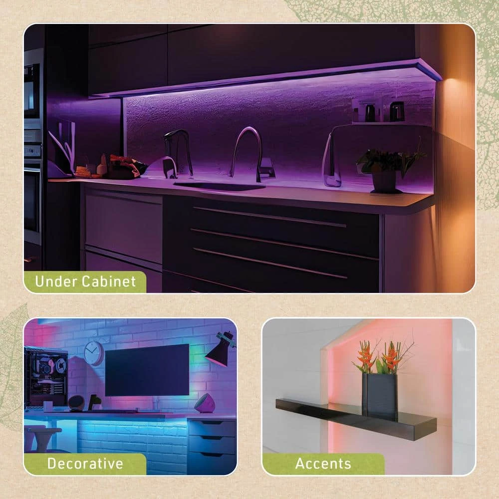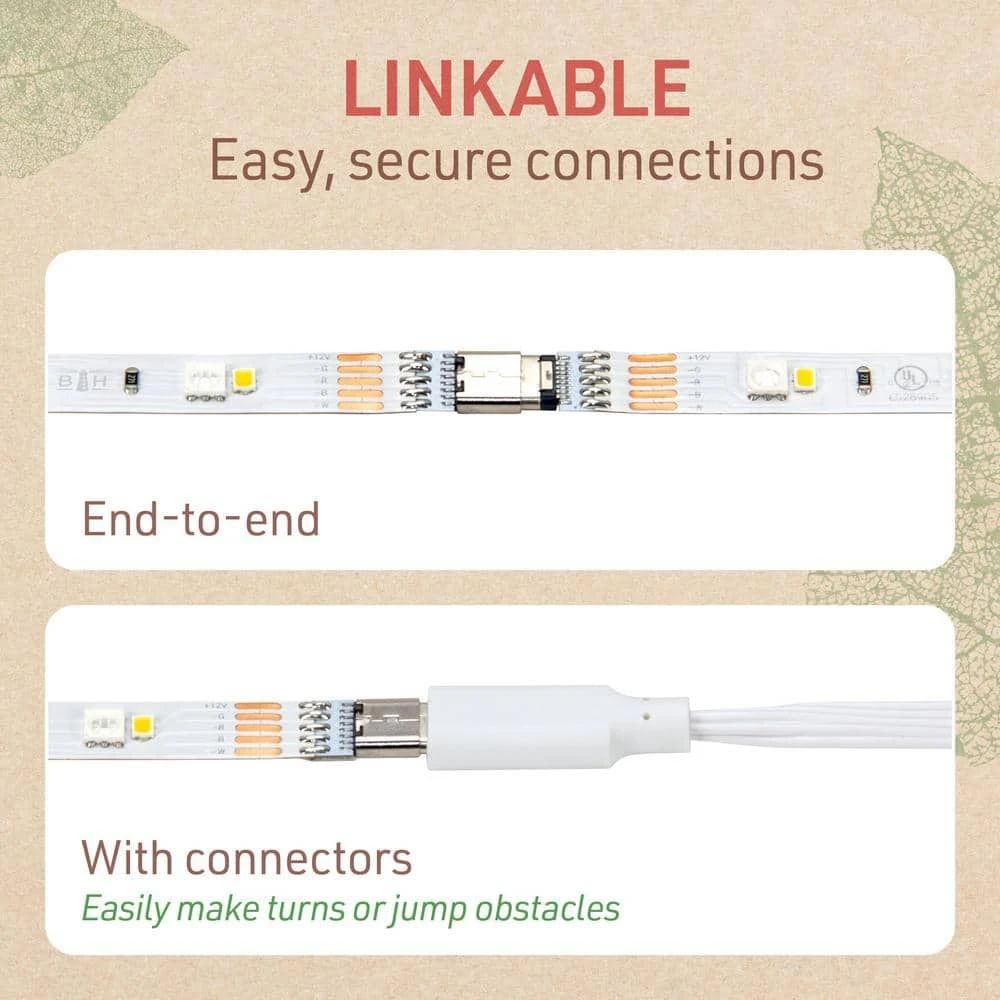 - Quickly and easily link versatile LED strips together end-to-end or to the quick-connect extension wires for longer installations (connect up to 5 12 in. strips with included power supply)