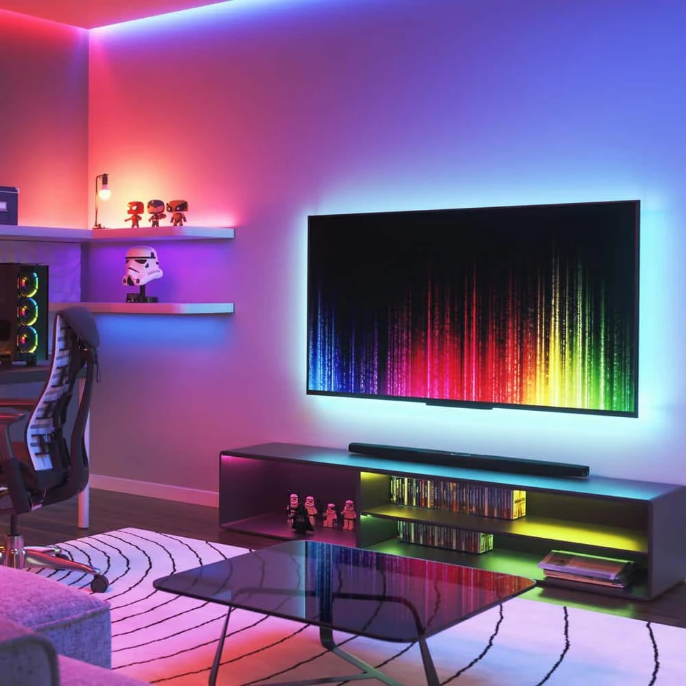 Transform your space and create stunning backlit illumination in any room with this Nanoleaf Essentials Matter smart color-changing LED Lightstrip. This Matter-enabled Lightstrip works to deliver the coolest to warmest whites and 16M+ vibrant colors to suit any mood or occasion. It is the perfect addition to any home, regardless of whether you are just starting your smart home journey or already are an expert. Use a Matter-compatible smart home hub, Thread Border Router, and the Nanoleaf App to get all the features this Lightstrip has to offer. For basic controls, use the built-in Controller or Bluetooth via Nanoleaf App.