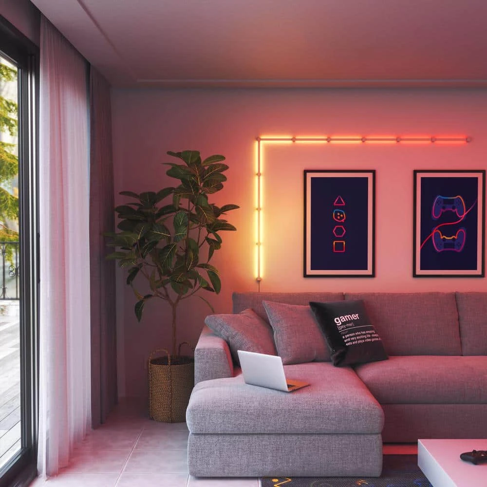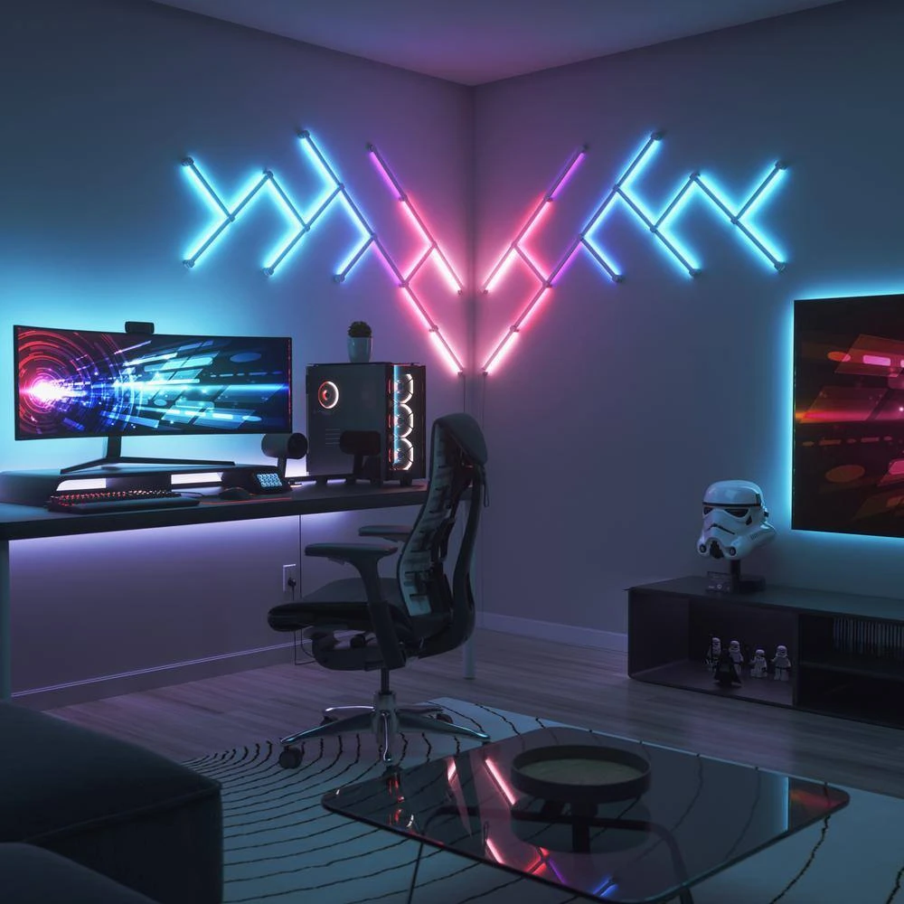 Nanoleaf Lines are smart backlit LED light bars that deliver stunning RGBW illumination. Connect Lines together into your own personalized geometric design, and customize with 16M+ colors and light animations to create a statement piece truly unique to your space. Available in 60 degrees and 90 degrees connecting options that you can mix-and-match for limitless design possibilities. The Lines are packed with innovative smart technology to deliver fun and functional features like Music Sync, Screen Mirroring, Schedules, and more, which means you’ll never run out of new ways to experience your lighting your way.