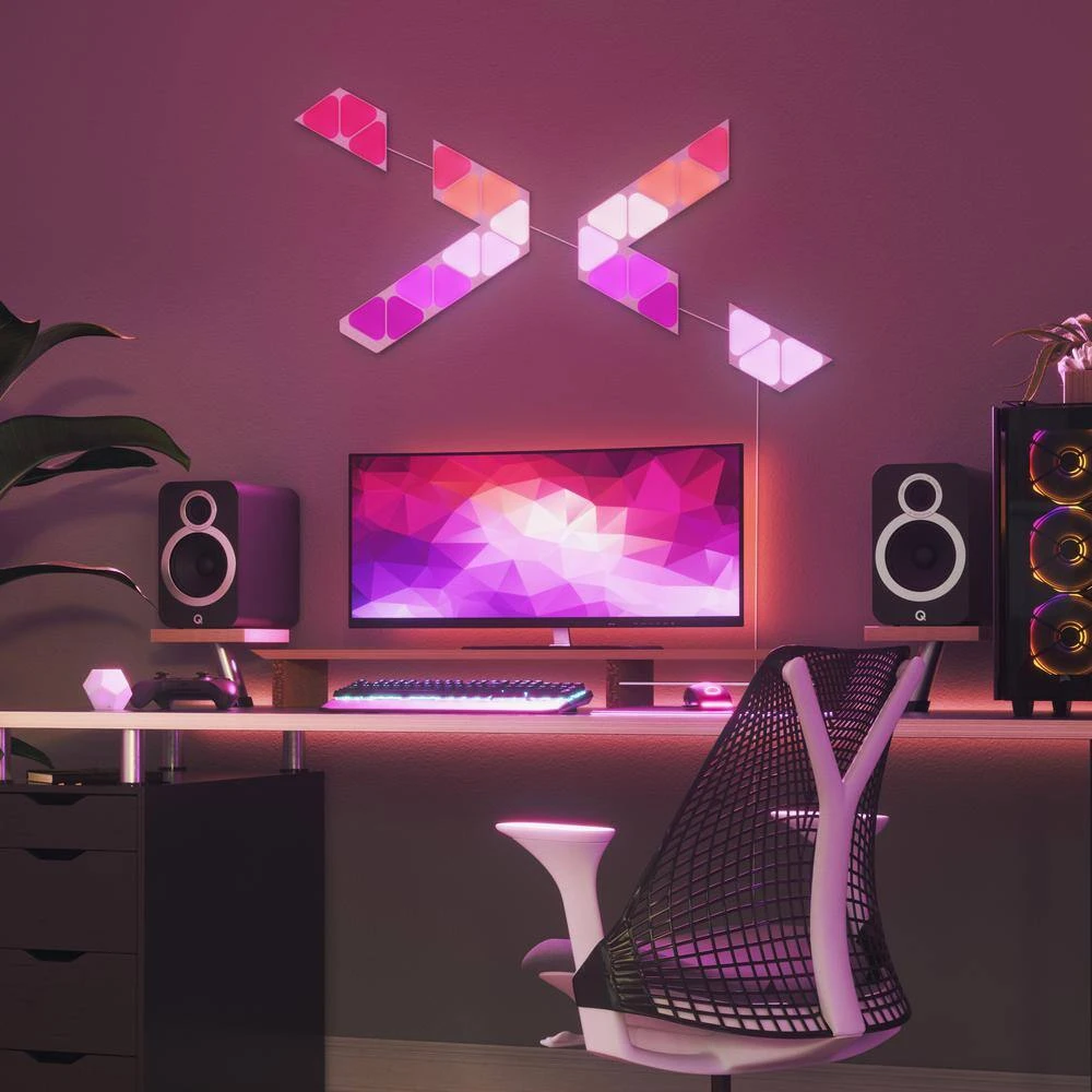 Smart modular color-changing light panels, with shapes you can mix-and-match for complete design freedom. Available in Hexagons, Triangles, and Mini Triangles, create your own custom layout and transform your space with color and light in minutes with their simple setup-no tools required. These ultra-thin panels are packed with innovative smart technology to deliver fun and functional features like Music Sync, Screen Mirroring, Schedules, Touch Reactivity, and more, which means you’ll never run out of new ways to experience your lighting your way.