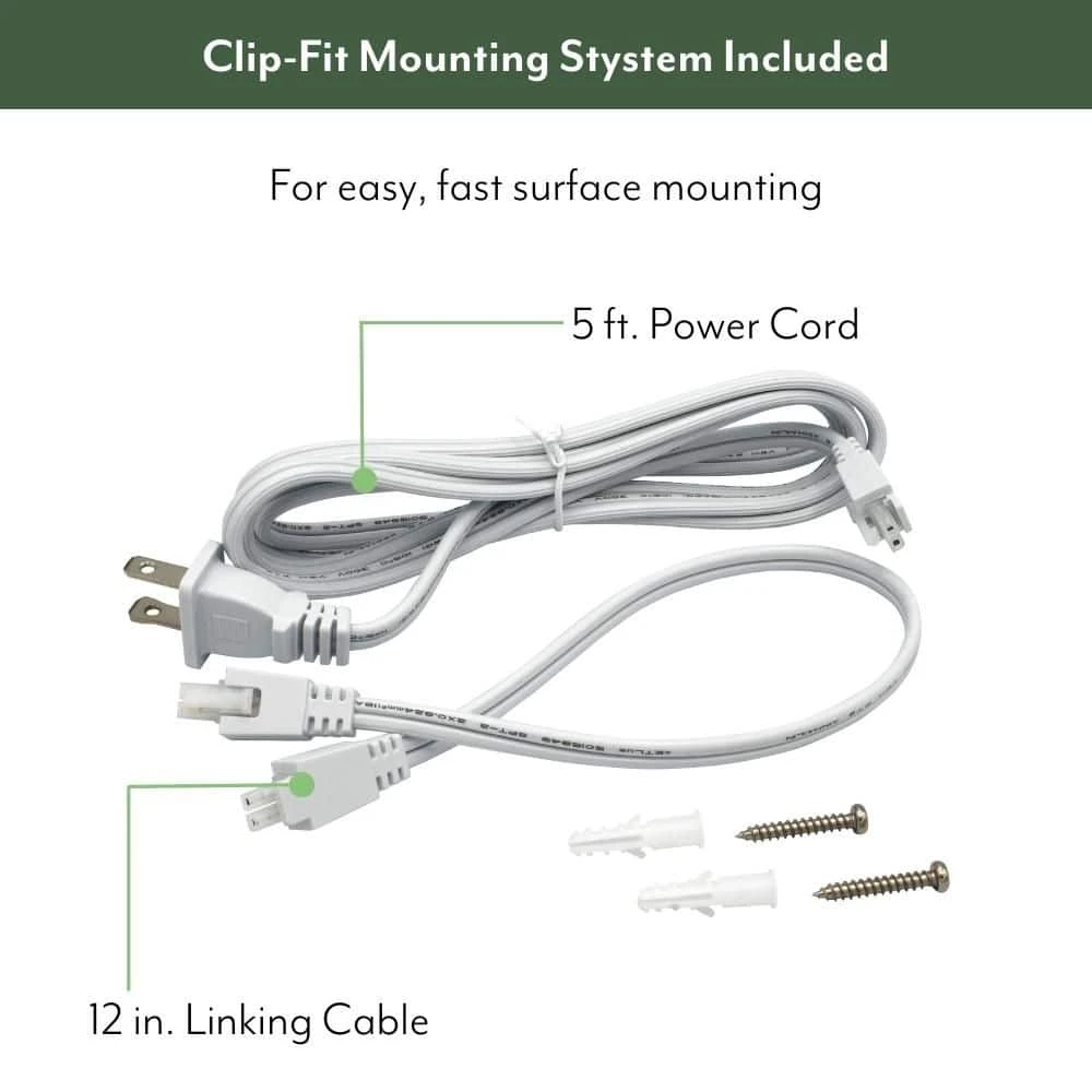 Directional Lighting with Nightlight & OneTouch Control – Illuminate your space with the ETI Nexus Adjustable LED Under Cabinet Light, designed for ultimate flexibility and performance. The adjustable lens tilts 55° for precise lighting direction, while the five Color Preference settings let you switch between color temperatures ranging from Warm White to Daylight – allowing you to tailor the lighting to your desired ambiance and mood. Activate the NightLightR mode to emit a soft Amber glow creating a warm and inviting atmosphere – perfect for evenings or when returning home. The One Touch allows you to control power and nightlight feature for all linked fixtures by pressing a summary on one fixture. Ideal for upgrading any under-cabinet space, this plug-in fixture includes a linking cable and mounting hardware for versatile installation. Designed for long-lasting performance and effortless, maintenance-free operation, the Nexus under cabinet light is energy-efficient, combining flexibility, convenience, and modern style.