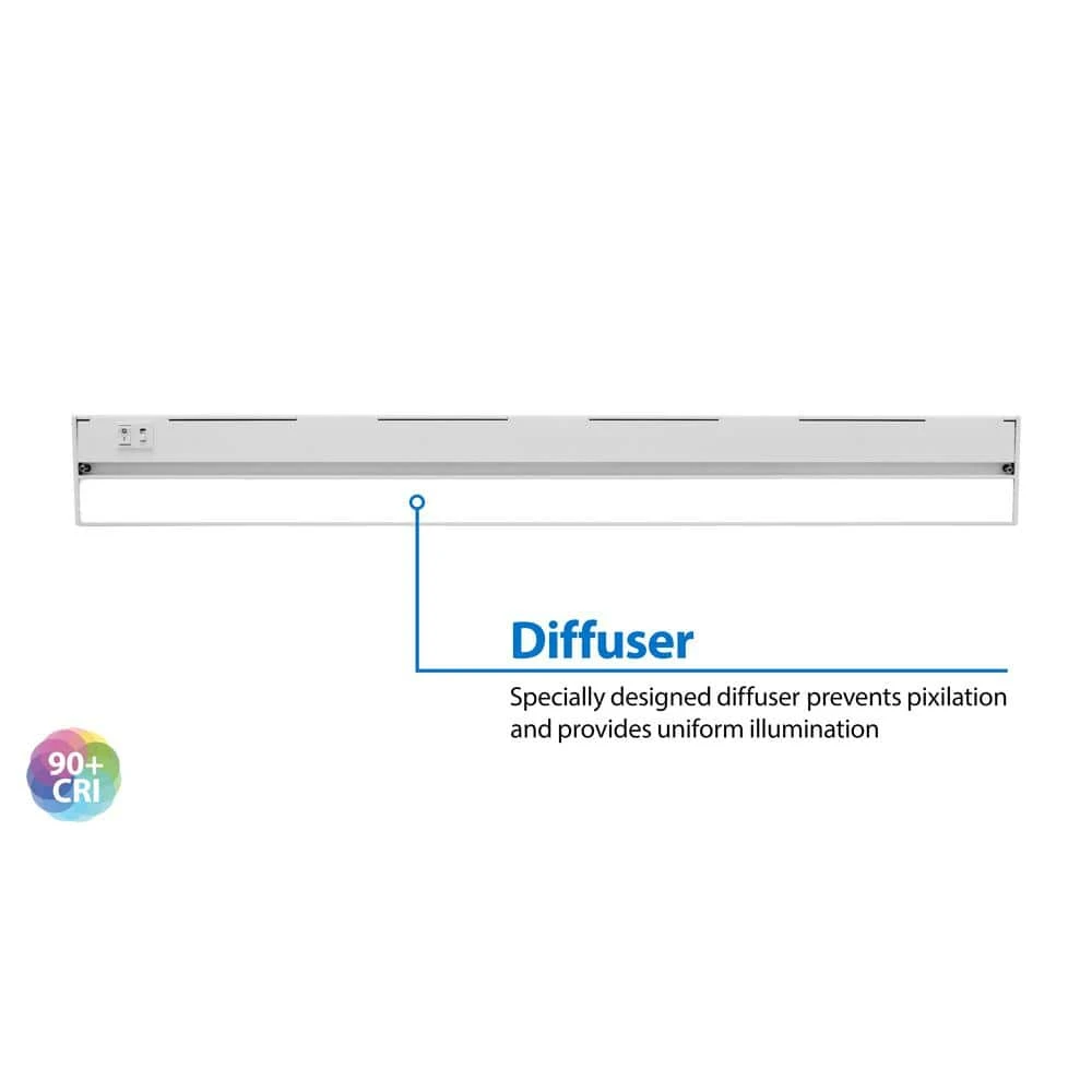 NICOR’s fifth generation LED Undercabinet light features the latest in LED technology. The NUC Series Selectable LED Undercabinet allows you to change the color temperature of the light to 2700K, 3000K, and 4000K. The selectable color temperature switch is located next to the on/off rocker switch for easy access. This fixture is designed for easy hardwire installation that can be done through various knockout ports. This allows you to control the undercabinet lights from a wall switch or dimmer for full range dimming. The 1 in. low profile design keeps the fixture out of sight to provide pure ambient light without heat or harmful UV light. This Selectable LED Undercabinet is available in Black, Nickel, Oil-Rubbed Bronze, and White in sizes ranging from 8 in. to 40 in. . It features a projected lifespan of over 100,000-hours and is protected by NICOR’s 5-year limited warranty.