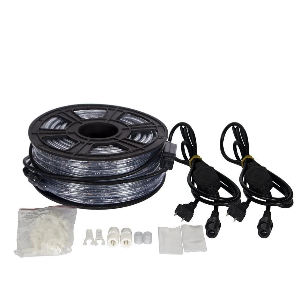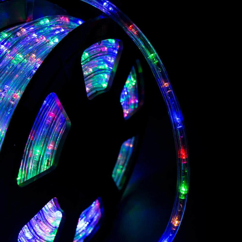 These versatile LED rope lights are perfect for decorating for any special occasion or sprucing up the house and business. The LED rope lights are encased in highly flexible PVC tubing that can contour any angle and be molded into any shape. These LED rope lights can be cut in 3 ft. increments for the perfect size needed. These LED rope lights are great for decorating stairways, railings, ceilings, desks, windows, boats, clubs, parties, galleries and special holidays. Specification: Color: Warm White/Blue/RGB/Cool White/Yellow/Red/Green Total Length: 50 ft./100 ft./150 ft. LED Bulbs: 540/1080/1620 LED Quantity: 36 LEDS/m LED Bulb Spacing: 1 in. Tube Diameter: 10 mm voltage: 110-Volt Working Temperature: 20 to 60 Lifespan: about 50000-hour.
