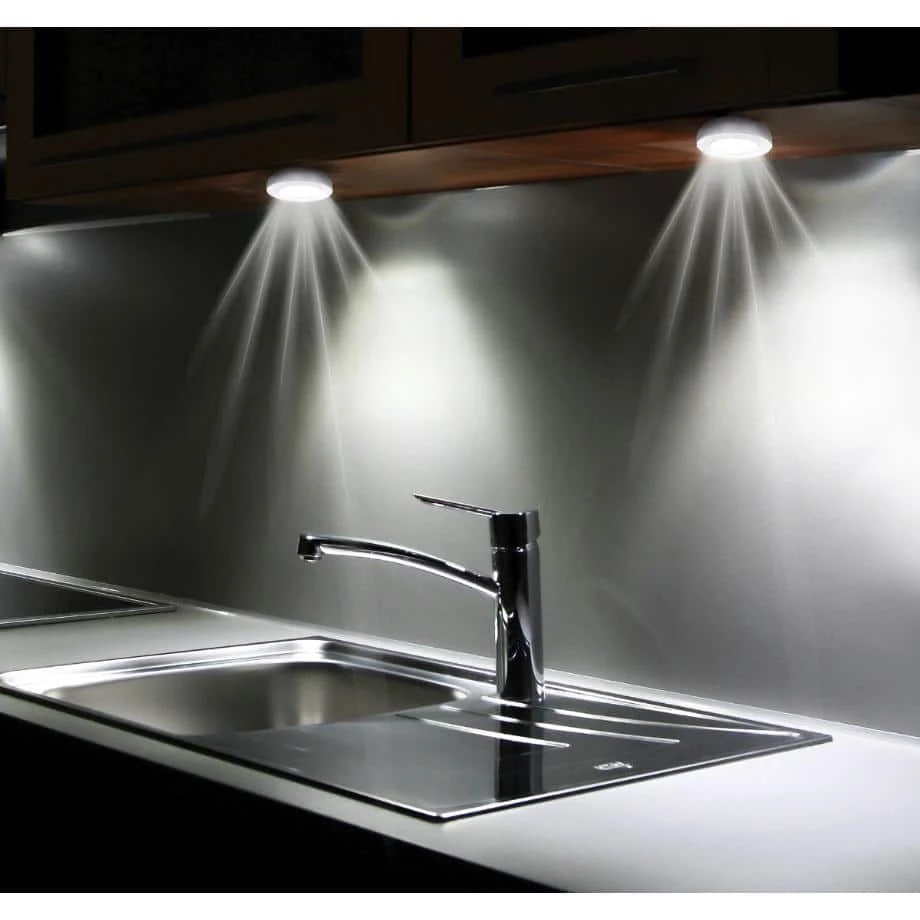 - Sticks to nearly any surface, no tools, wiring, outlet needed