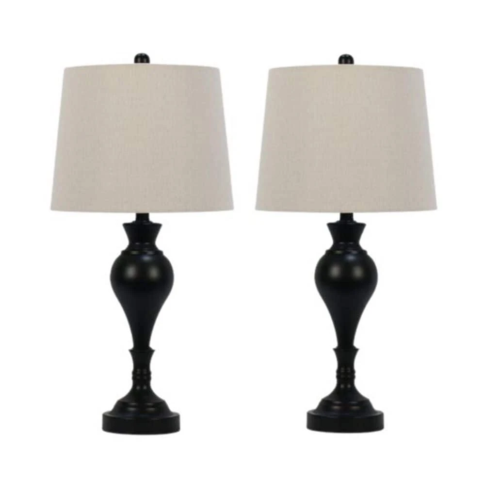 Fangio Lighting’s 1630BLK-USB-2PK pair of 26.5 in. metal table lamps with USB port is sure to instantly charm. Attention to detail can be found in the striking look and stunning design that will add a subtle transitional flare to your favorite space. The satin black finish is among the most desired in homes today. Lamps include designer shades made of decor friendly oatmeal linen. Lamps come complete with an easy to use on/off switch plus a USB port. These lamps take 1 bulb with a maximum wattage of 100 (Not Included). Lamp is UL and CSA listed. Showcase your discerning tastes brilliantly with this item. The stylized, metal look possesses its own presence while illuminating your exquisite decorating tastes. If you enjoy the graceful lines of transitional designs, these are the lamps for you. Bring this item home. You will be glad you did.