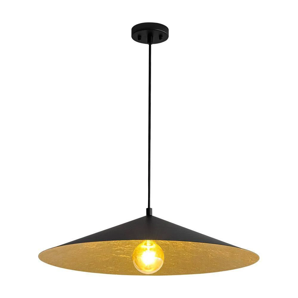 - Black umbrella – shaped iron shade with gold foil interior for an industrial – chic look