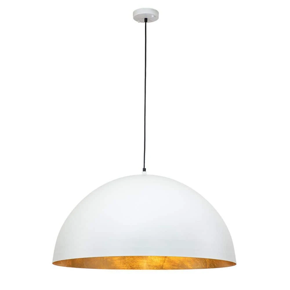 Revamp your kitchen with this stunning 3 light pendant light, a perfect blend of industrial and elegant design. Its pristine white exterior contrasts beautifully with the luxurious gold foil interior, creating a captivating visual appeal. Measuring 31.5 in. wide, the large dome – shaped iron shade makes a bold statement. Ideal for hanging above kitchen islands or dining tables, it casts a warm, inviting glow that enhances the ambiance of your gatherings.