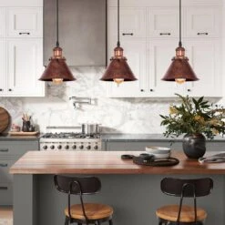 60 -Watt 1-Light Light Red Pendant Light With Glass Shade, Hanging Vintage Ceiling Light Fixture