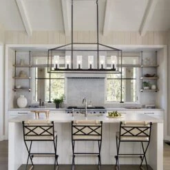 6-Light Imitation Wood Grain Square/Rectangle Pendant With Clear Glass, No Bulbs Included