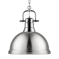 Golden Lighting Duncan 1-Light Pendant With Chain In Chrome With A Pewter Shade