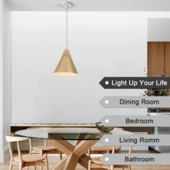 1-Light Gold Cone Pendant Light With Metal Shade, No Bulbs Included