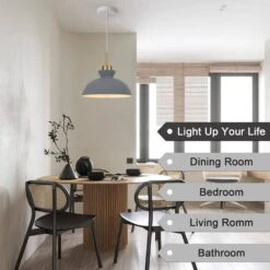 1-Light Simple Gray Single Dome Pendant Light With Metal Shade