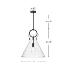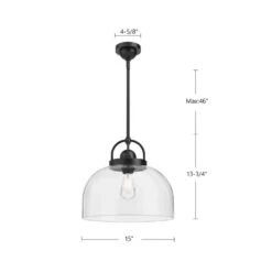 Emerson 18 In. 1 Light 60-Watt Matte Black/Clear Glass Pendant Light