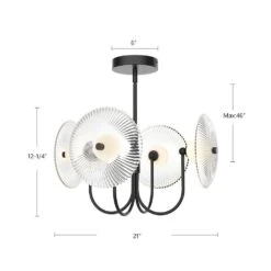 Hera 21 In. 1 Light 20-Watt Brushed Gold/Clear Ribbed Glass Integrated LED Pendant Light