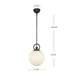 Haven 12 In. 1 Light 60-Watt Matte Black/Opal Matte Glass Pendant Light