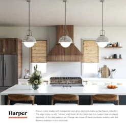 Harper 16 In. 1 Light 60-Watt Steel Shade/Opal Matte Glass Pendant Light