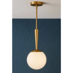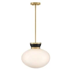 Maisie 1-Light Lacquered Brass Shaded Pendant Light With =Shade.