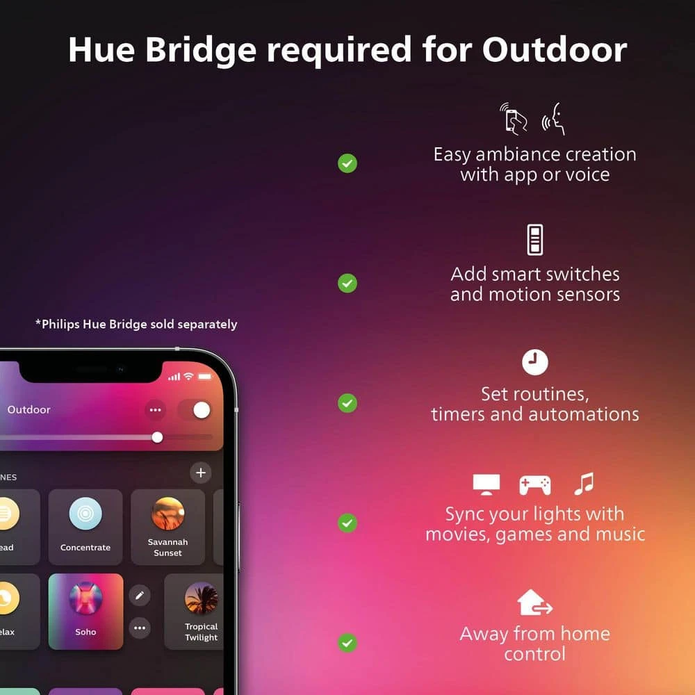 - Requires the Hue Bridge (sold separately) for the full Hue smart experience