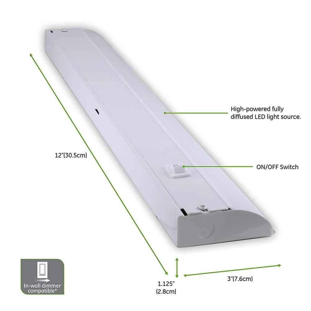 Create the ambiance of your choice with the 12 in. GE Premium LED Direct-Wire Light Fixture. This light is the perfect addition to kitchens, pantries, laundry rooms and home offices. Its classic white finish goes with any decor and with up to 485 Lumens of soft white light, it’s capable of illuminating even the darkest areas of your home. Pair your light with an in-wall dimmer switch for more lighting options. Adjusting the brightness allows you to match the needs of the space and occasion. This fixture puts you in total control of the look and feel of your home. Installing the light by directly wiring it to a wall switch keeps outlets free and eliminates visible cords and all mounting hardware is included to securely place your fixture. Durable metal construction, long-lasting LED and a lifetime warranty ensure this light is reliable for-years to come. Provide the light your space needs with the 12 in. GE Premium LED Direct-Wire Light Fixture.