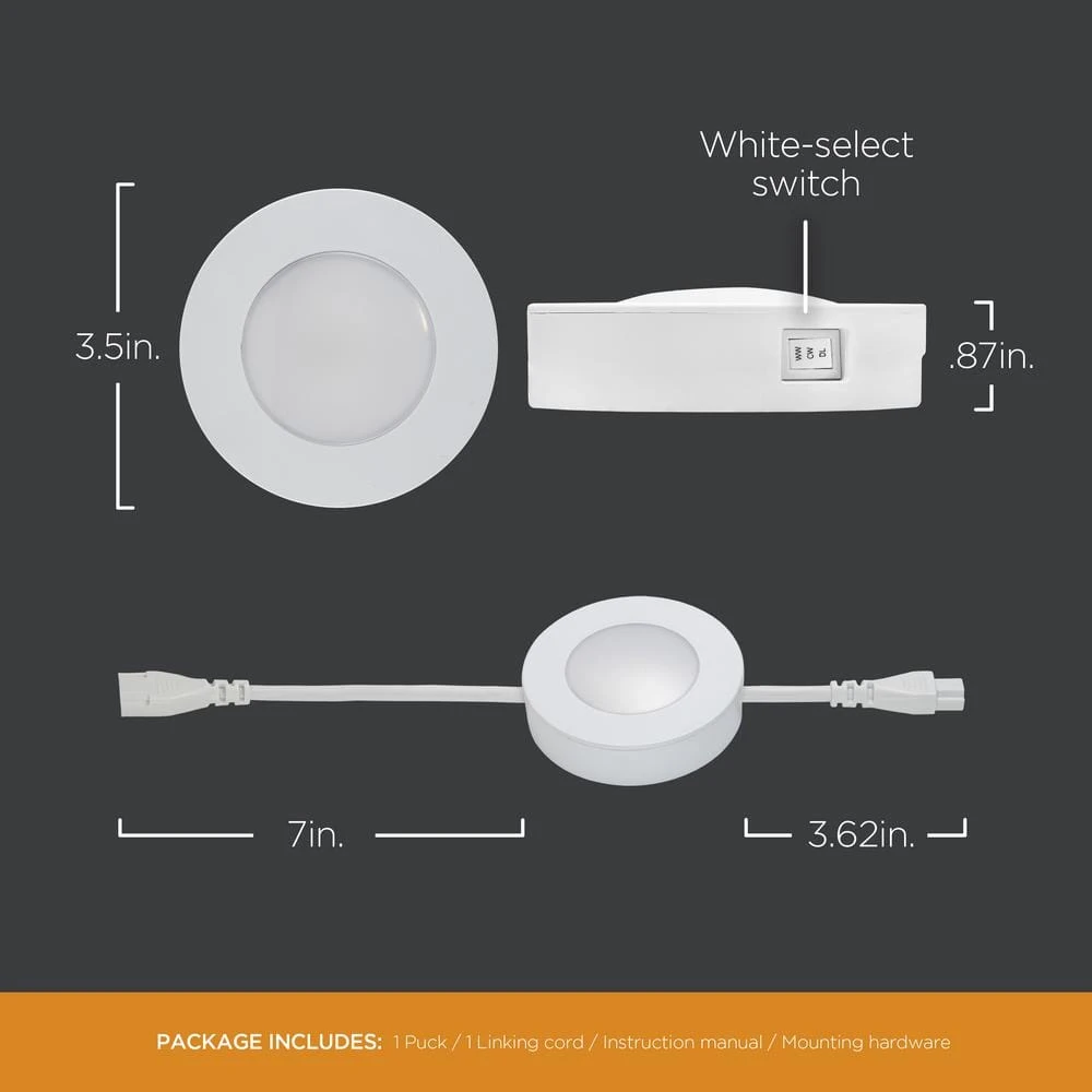 - Streamlined install – all the hardware you need to install the puck is conveniently included inside of the box-simply mount the light and plug it into a nearby outlet