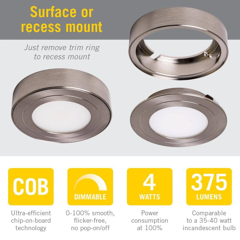 - Professional quality LED puck lights: featuring industry leading lifespan and higher lumens output, these recessed lights are the perfect solution for architectural LED lighting, under cabinet lighting, display cabinets, downlighting and commercial lighting projects; UL Safety Listed