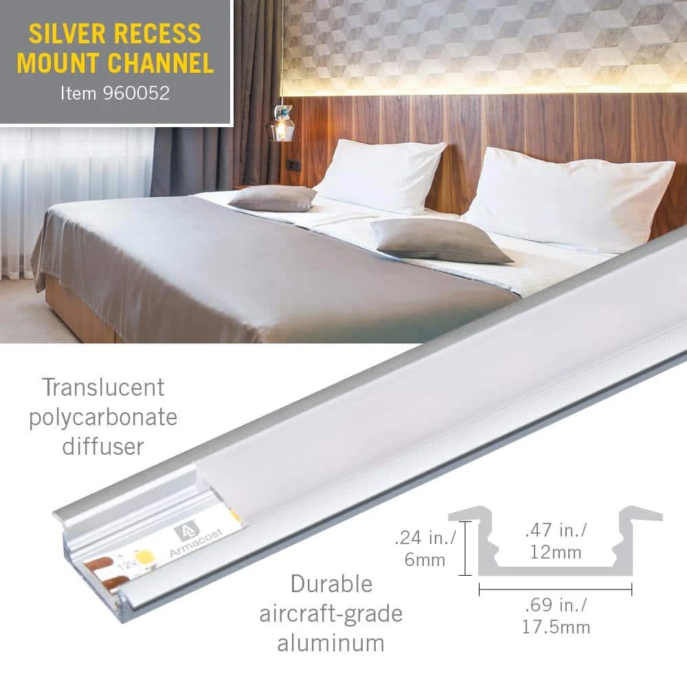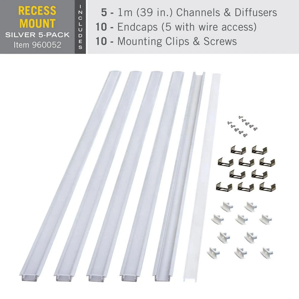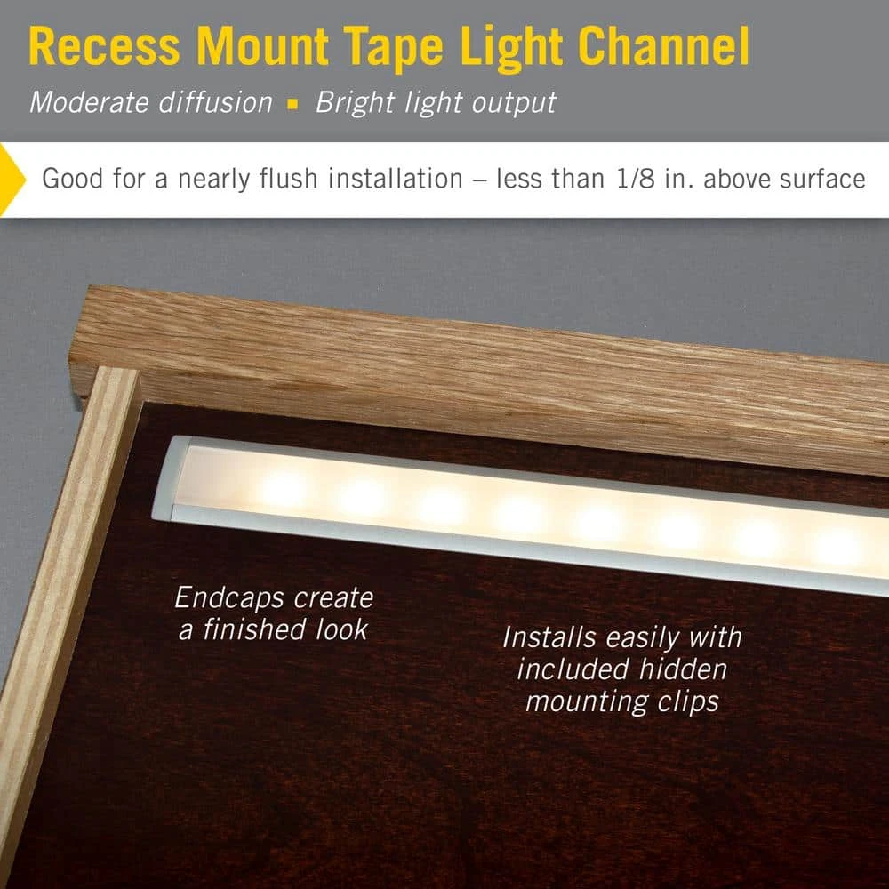 - Recessed profile creates a flat, easily concealed channel for LED tape light or strip light
