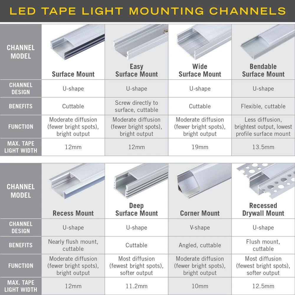 - Channels are an attractive way to complete a professional LED tape light strip installation