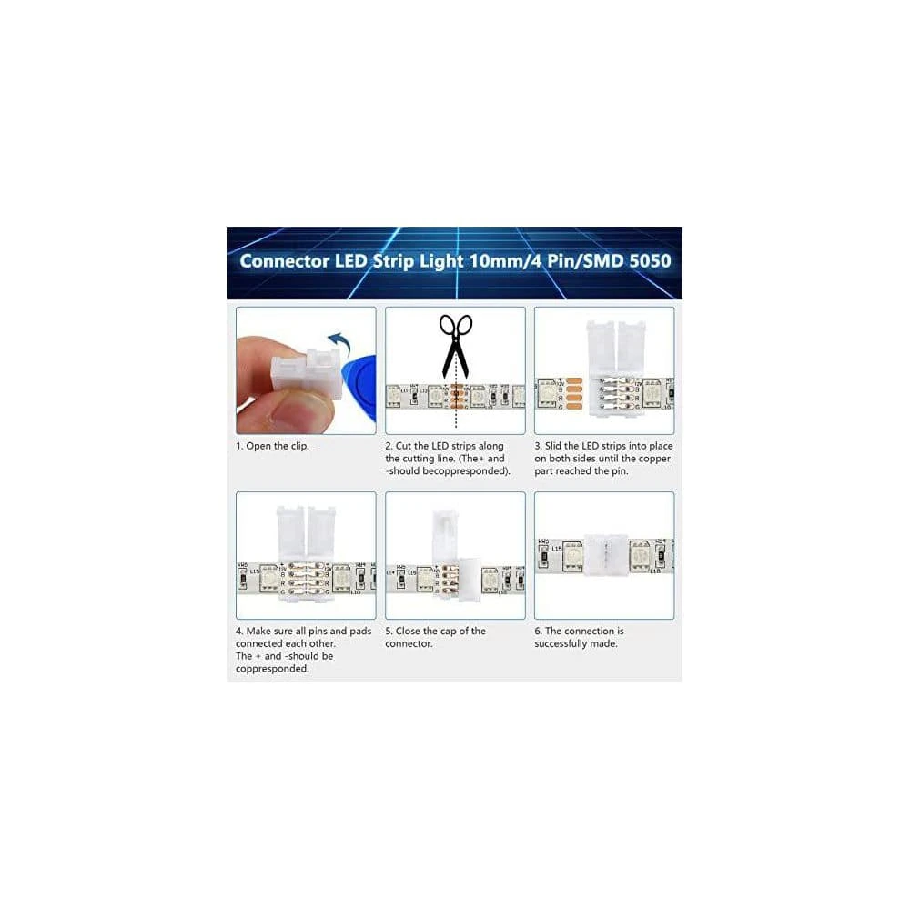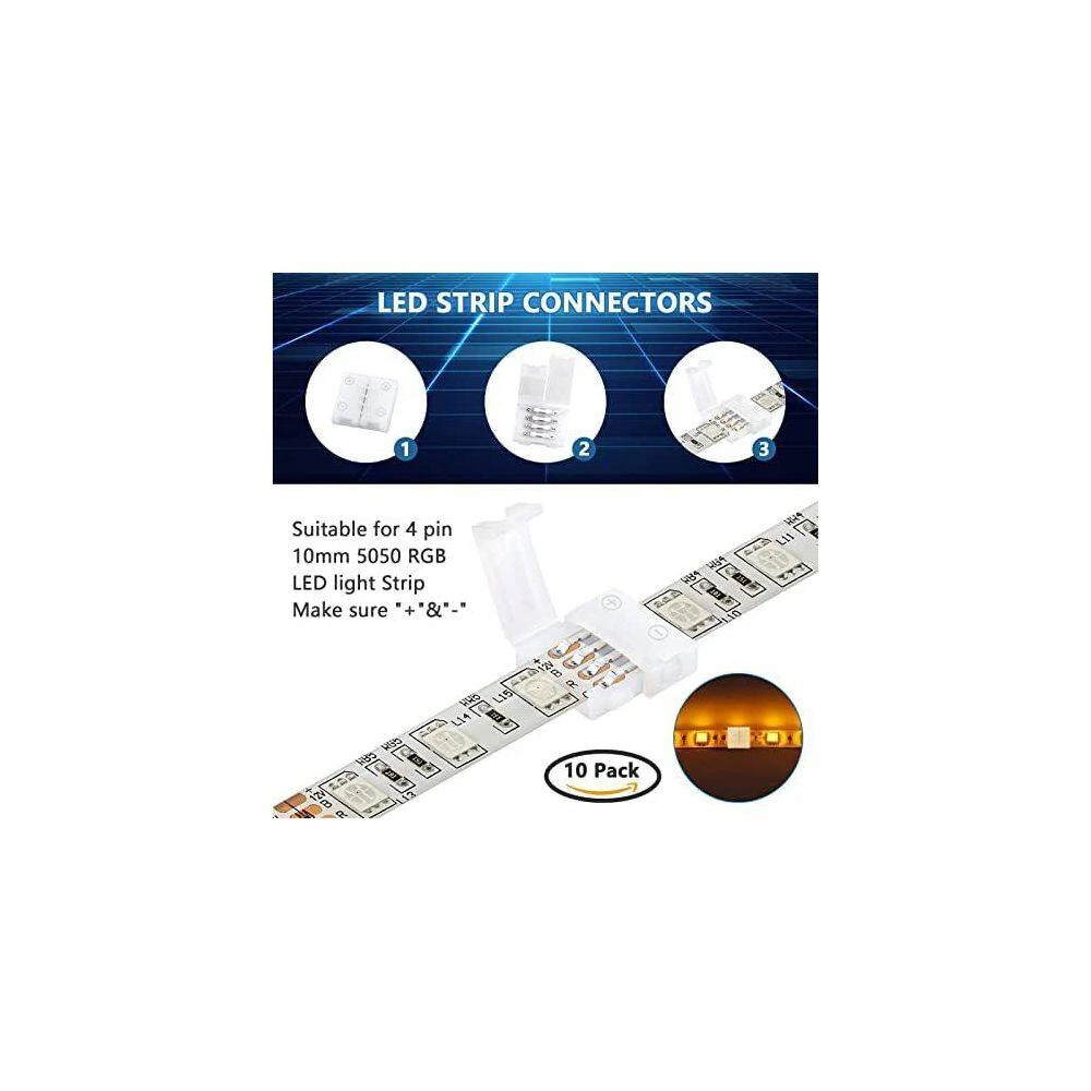 - Compatible with all 10 mm wide 4-pin smd 5050 RGB flexible strips, these connectors allow for solderless, gapless joining of waterproof and non-waterproof LED strips for versatile installations