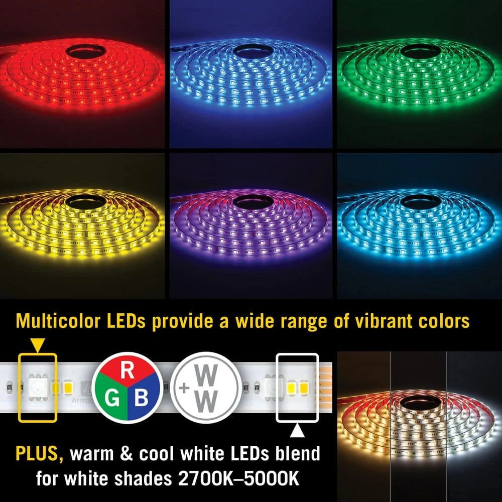 - RGB+WW multicolor + tunable white tape light creates a beautiful range of vibrant colors and adjustable warm and cool shades of white