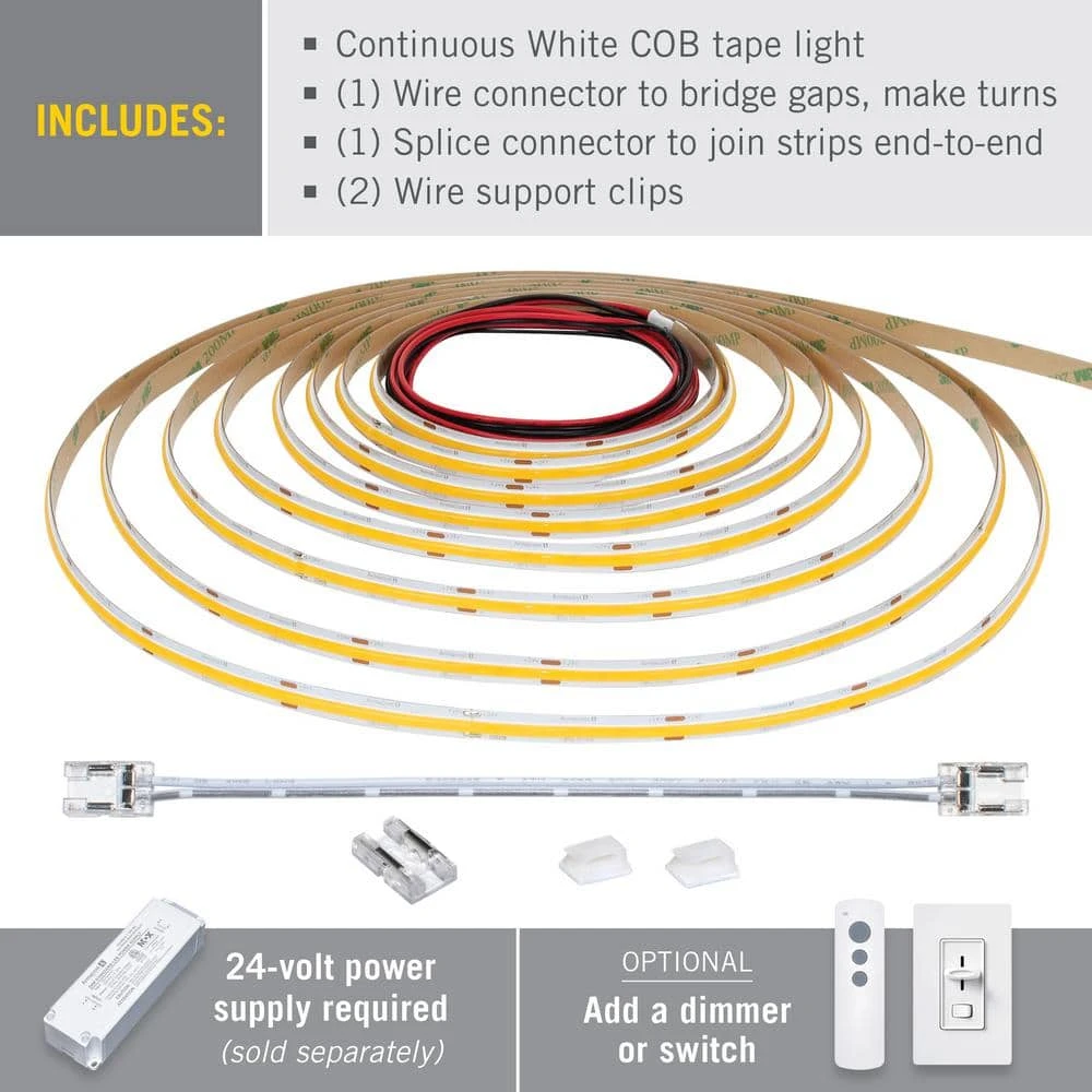 RibbonFlex Pro 24-Volt White COB 32.8 Ft. Dimmable Cuttable Integrated LED Strip Light Tape 2700K 442 Lumen/Ft