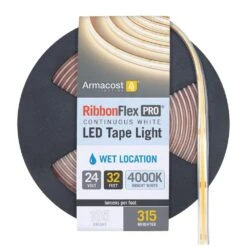 Discover seamless waterproof LED tape lighting with 24-Volt COB Outdoor LED Strip Lights from Armacost Lighting. The continuous LED light strips utilize Chip-on-Board (COB) technology, to produce smooth, bright, and spot-free illumination. With IP67 weatherproof protection, flexible LED strip lights are suitable for both indoor and outdoor environments. Designed to meet the needs of lighting professionals, it features top-quality components for superior longevity and a premium appearance. It’s a ideal for outdoor LED accent lighting on decks, porches, docks, and patios. Pair it with an Armacost Lighting 24-Volt power supply (required) and optional dimmer or switch (sold separately) for the ultimate lighting experience.