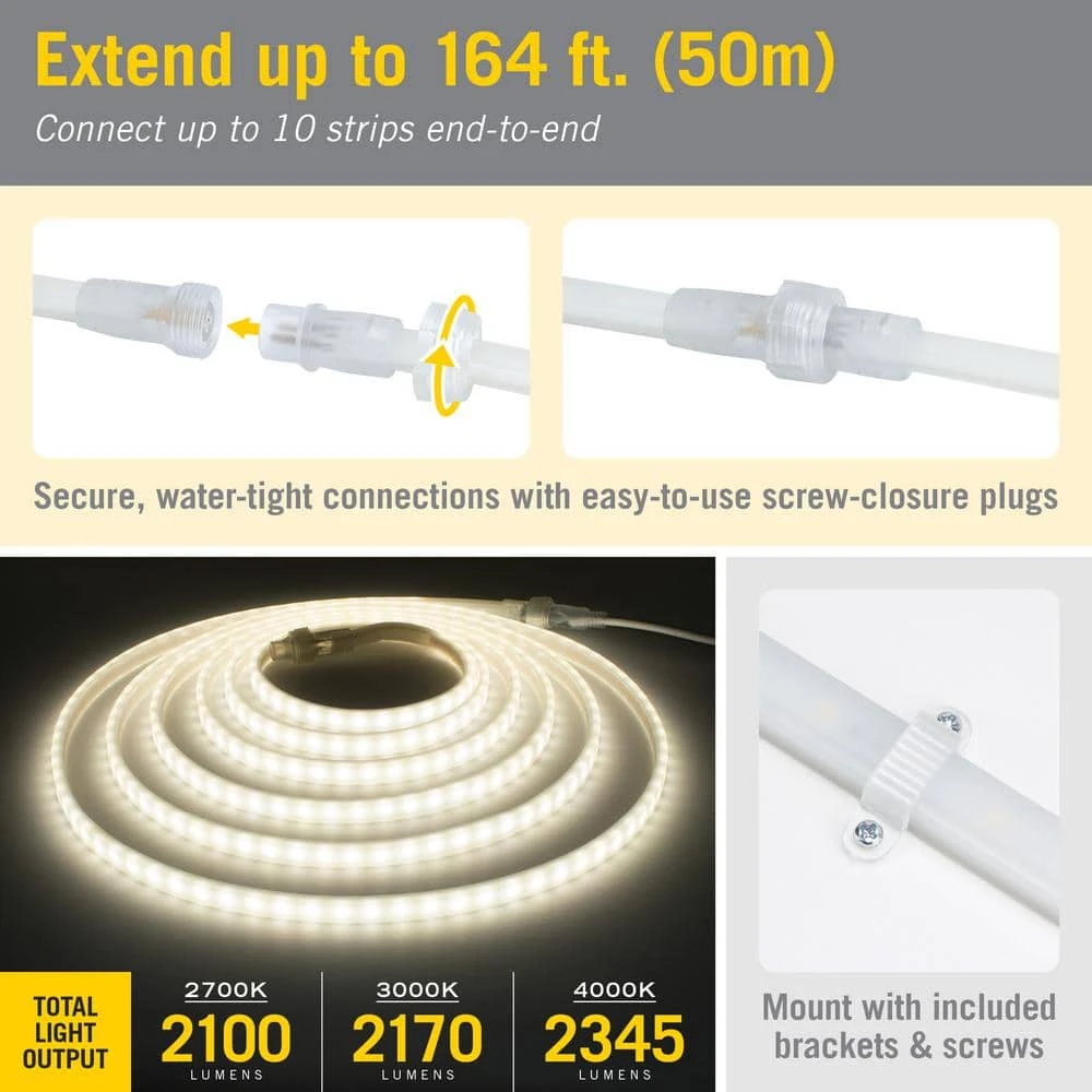 Effortlessly illuminate any outdoor space with Armacost Lighting’s RibbonFlex Pro 120-Volt White Outdoor LED Strip Lights. The flexible LED tape light operates at 120-Volt and can be plugged directly into a standard outlet without a LED power supply. IP67 rated waterproof LED strip lights are perfect for low voltage landscape lights, pool area lighting and deck or patio lighting.