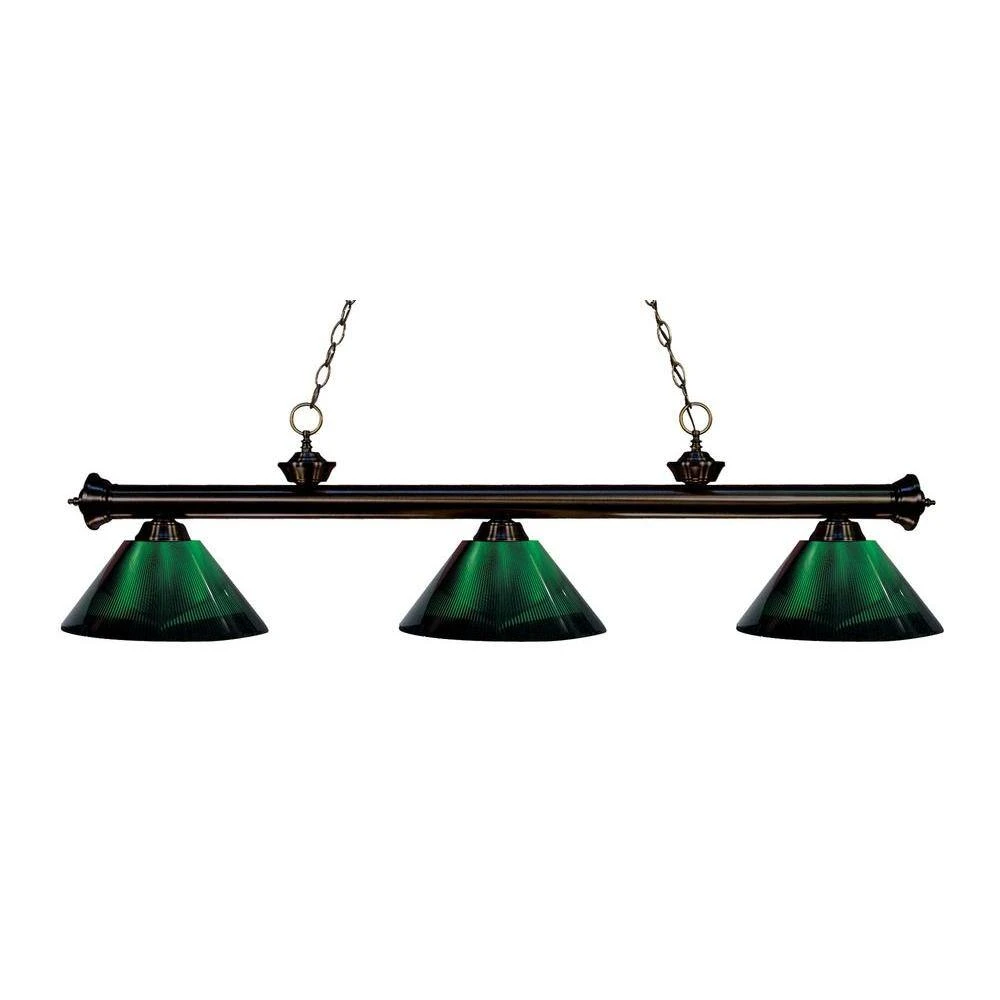 Finished in bronze this 3-light bar fixture uses acrylic green shades to create a contemporary look with a timeless quality to it. This fixture would be perfect for the game room, or any other room of the house where a touch of under stated sophistication is needed. This light is truly complimentary to different design styles.