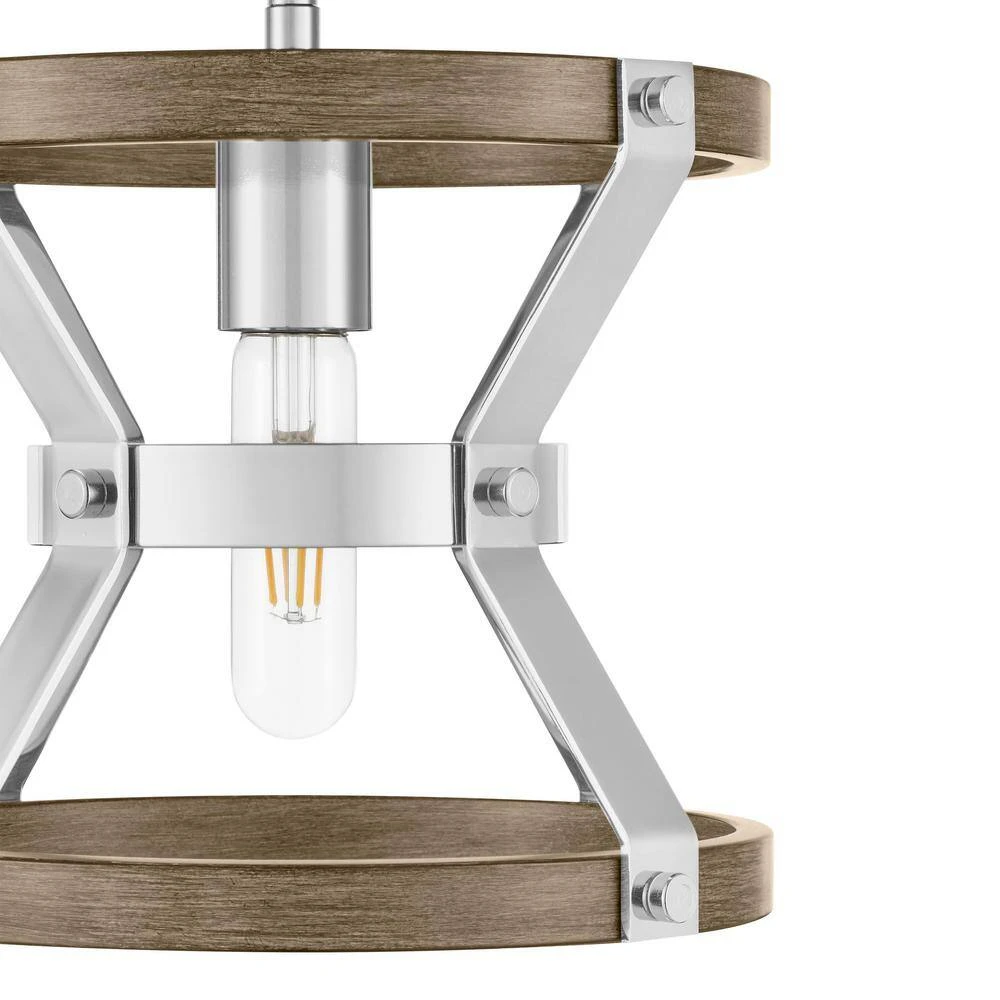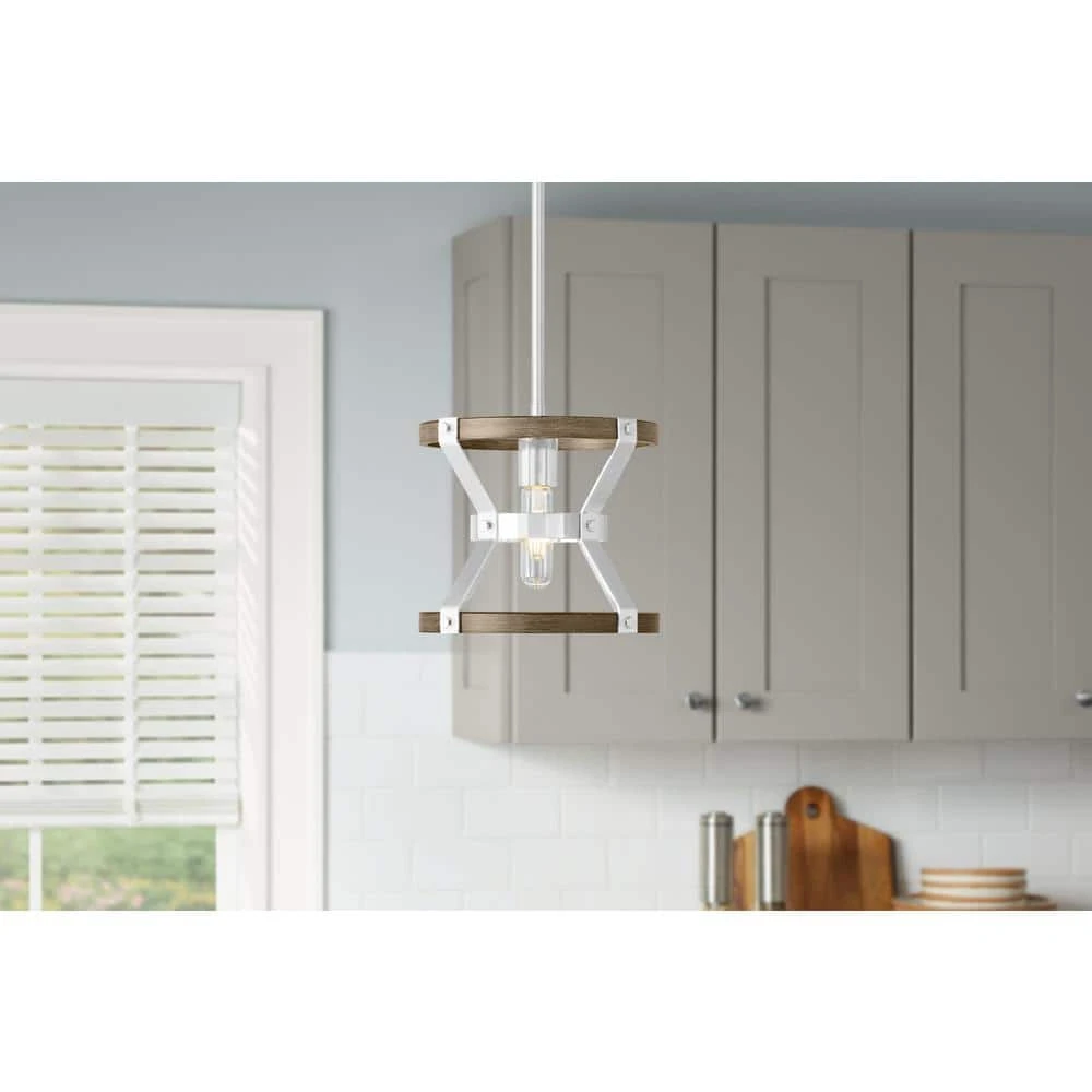 - One-light mini pendant, with a modern silhouette, speaks to today’s home interiors, a deep polished nickel finish perfectly blends with the warmth of the hand painted wood accents complementing effortlessly a variety of interiors, this piece is sure to be a chic addition to your home