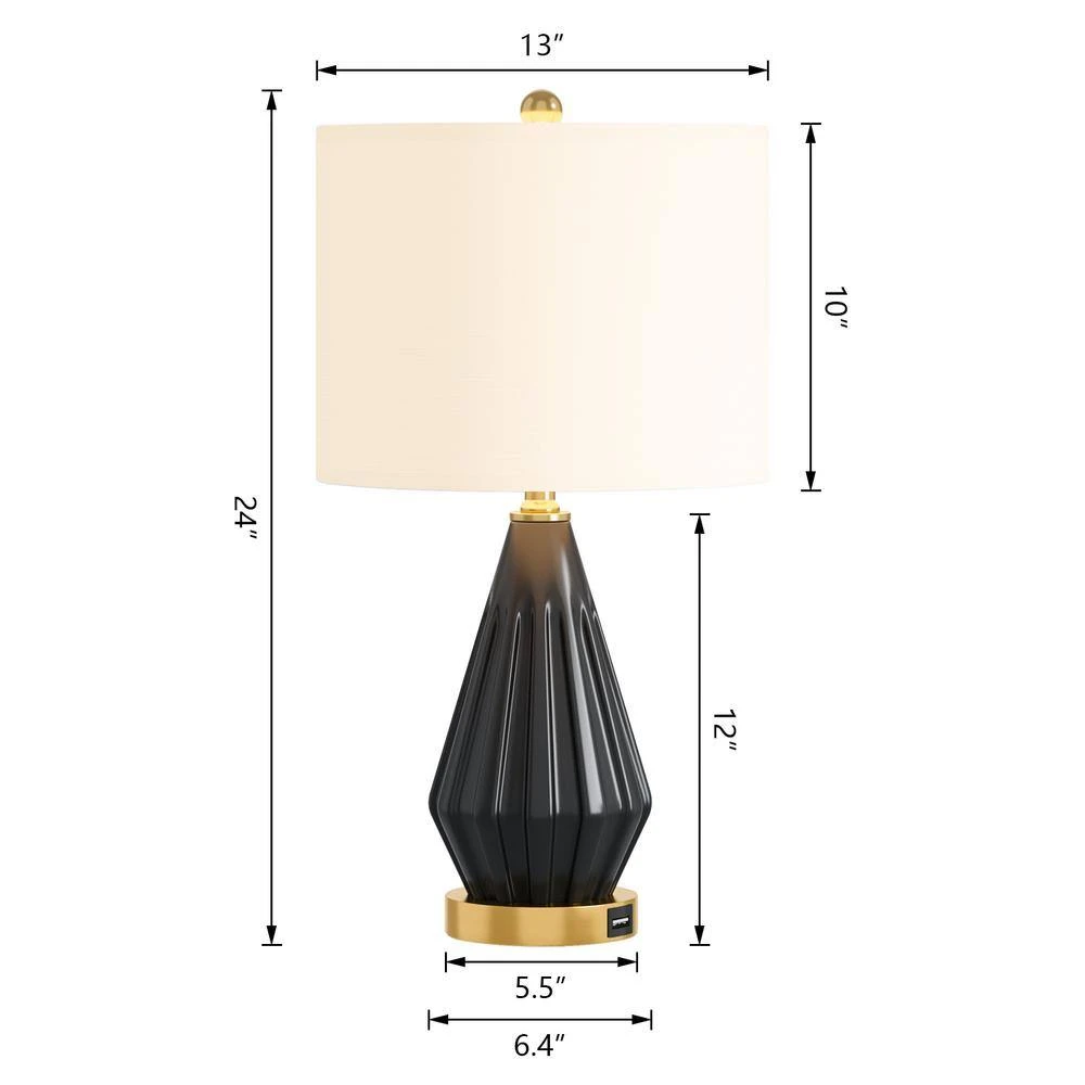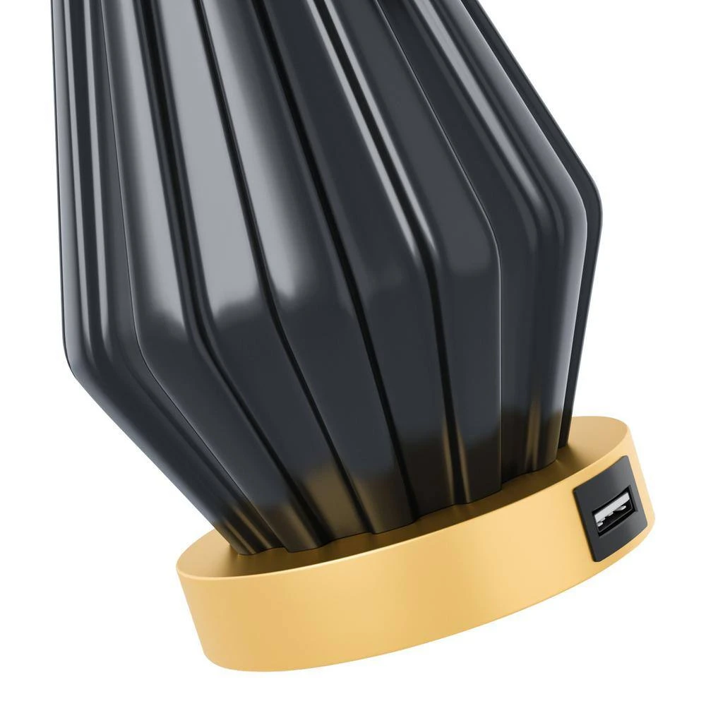 This modern table lamp features a black ceramic base accented with gold details, perfectly blending simplicity with luxury. The light shines softly and warmly through the white lampshade, adding comfort and elegance to your space. Whether placed on a bedside table in the bedroom, a corner of the study, or a side table in the living room, this lamp is sure to become a statement piece in any room.Beyond its aesthetics, it is also highly functional. The base is equipped with a USBcharging port, ensuring your electronic devices stay powered at all times-a thoughtful companion for modern living.