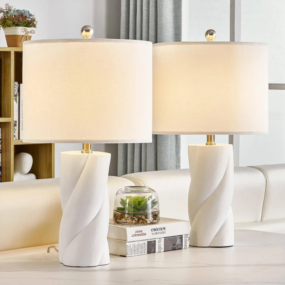 This modern minimalist table lamp set features a spiral ceramic base paired with a pure white lampshade, adding an elegant touch to your home decor. Perfect for bedrooms, living rooms, or study areas, its soft lighting creates a cozy atmosphere. The lamp’s refined design and durability combine aesthetics with practicality, making it an ideal choice for elevating your interior style.