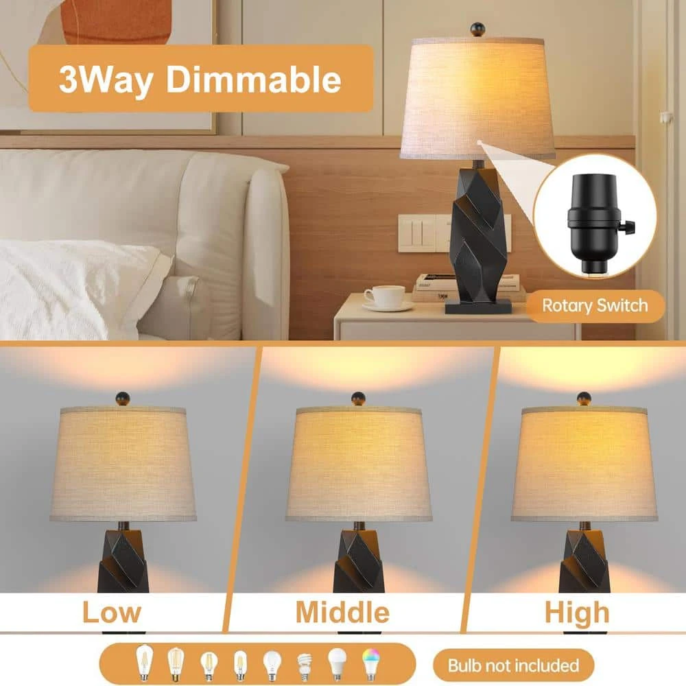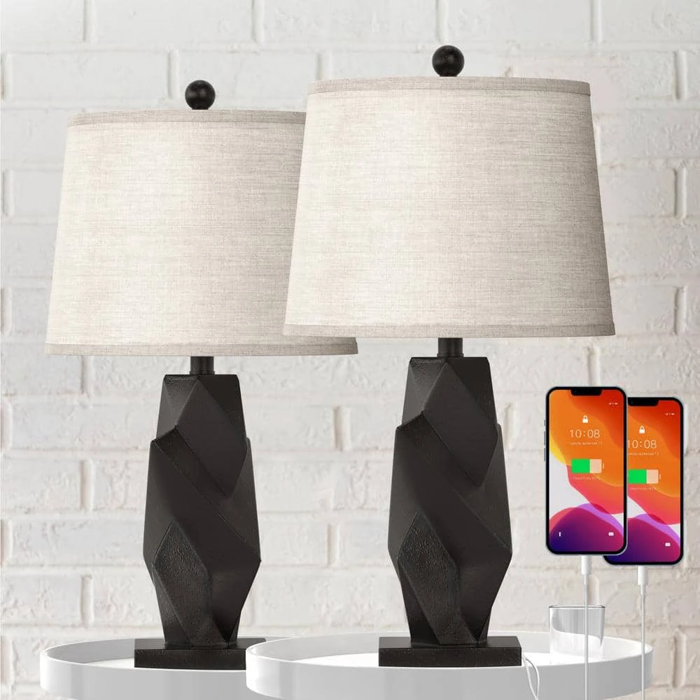 This geometric black table lamp showcases a stunning geometric design, making it an excellent choice for any home space, whether in the living room or bedroom. The adjustable brightness feature requires compatible bulbs for use. The base includes USB and Type-C ports for charging your phone, tablet, Bluetooth headphones, and other electronic devices. This product is sold as a combo set.